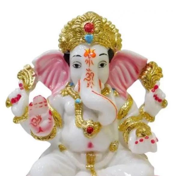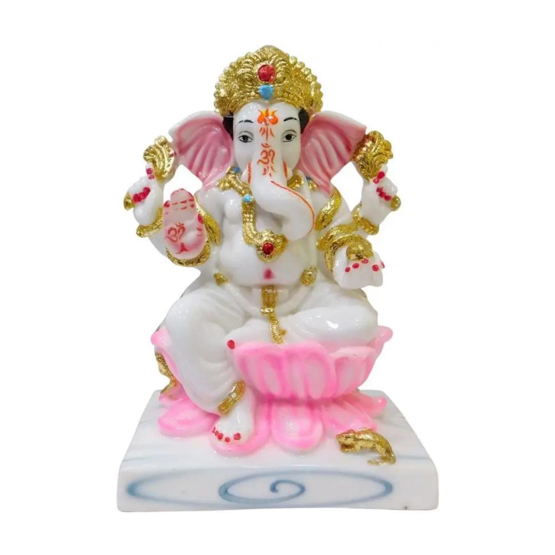White Ganesh Murti 17 cm | Marble Lord Ganesha Idol | Hindu God Home Temple Decor | Vastu Blessing Statue | Spiritual Showpiece Gift