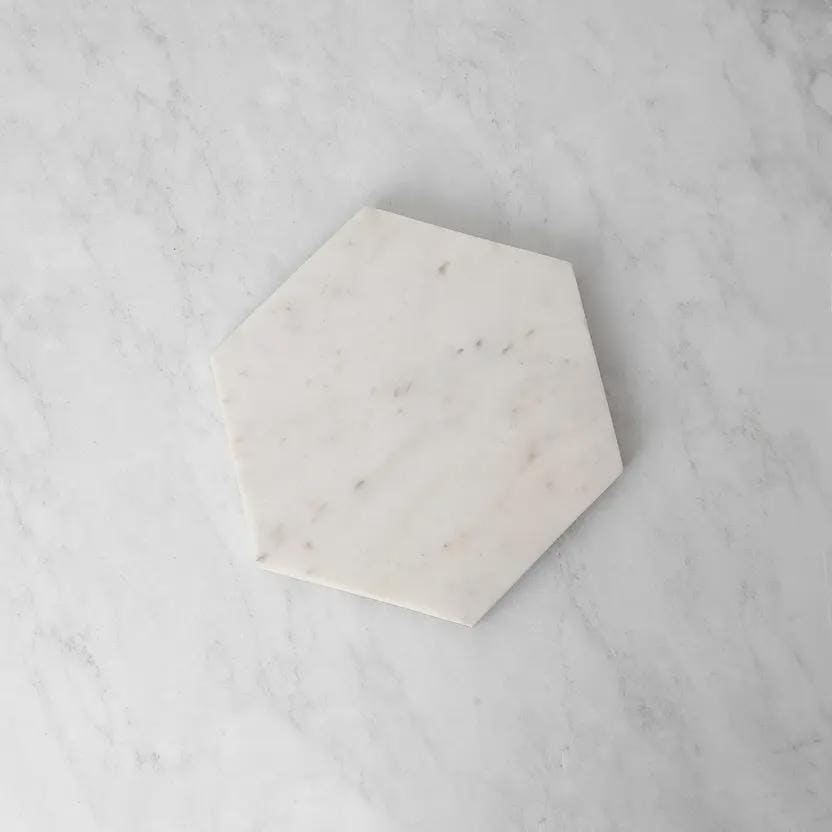 Hexagonal White Marble Chopping Board 12” | Natural Stone Cutting & Serving Board | Kitchen Prep Board | Gift for Foodies & Home Chefs