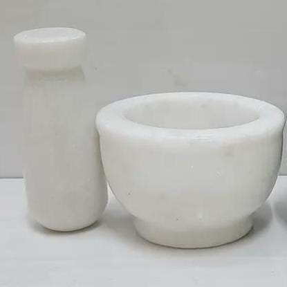 Marble Mortar & Pestle Set 4″ – Natural Stone Spice Grinder Masher, Handmade Kitchen Tool, Indian Cooking Essential