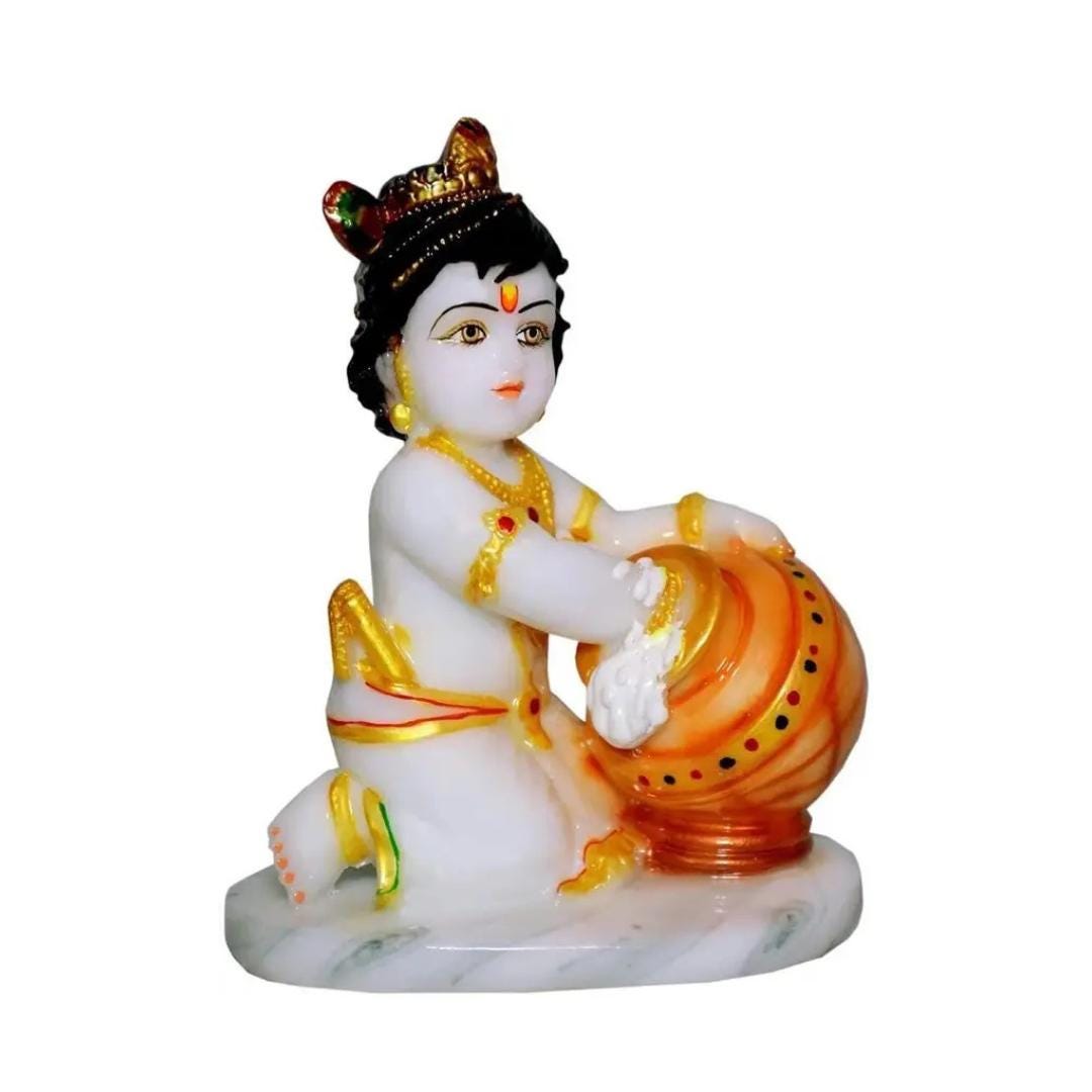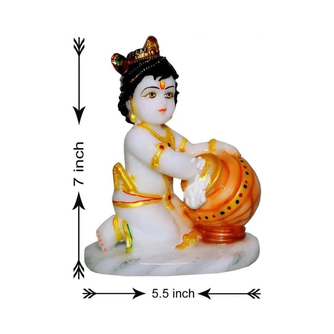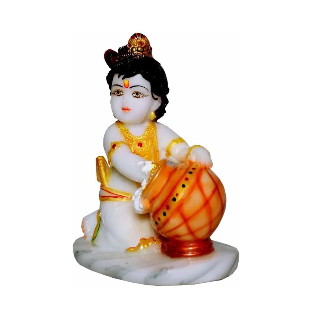 Handcrafted Krishna Idol Marble Statue • Bal Gopal Showpiece for Home Temple & Office Decor • Multicolor Hindu God Krishna Figurine