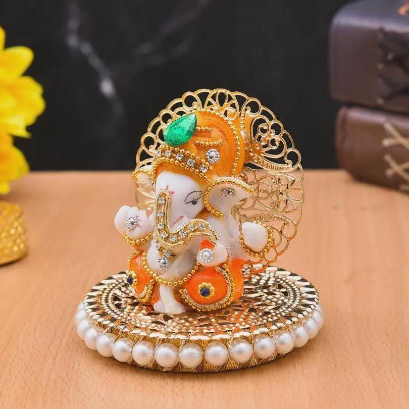 Handcrafted Lord Ganesha Idol Figurine | Mini Polyresin Ganpati Showpiece for Car Dashboard, Home & Office Decor | Spiritual Gift