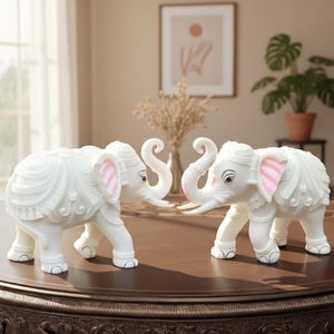 Each elephant is handcrafted by skilled artisans using premium marble dust — a material known for its smooth finish, durability, and subtle natural texture. The delicate contours and detailing capture the gentle majesty of the elephant, making it a striking decorative accent.