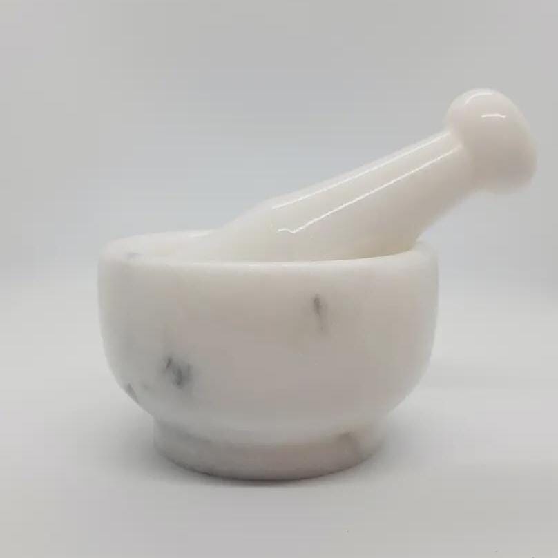 Handmade Marble Masher & Mortar Set — Natural Stone Herb and Spice Grinder for Kitchen, Ayurvedic, Gift and Home Decor Tool