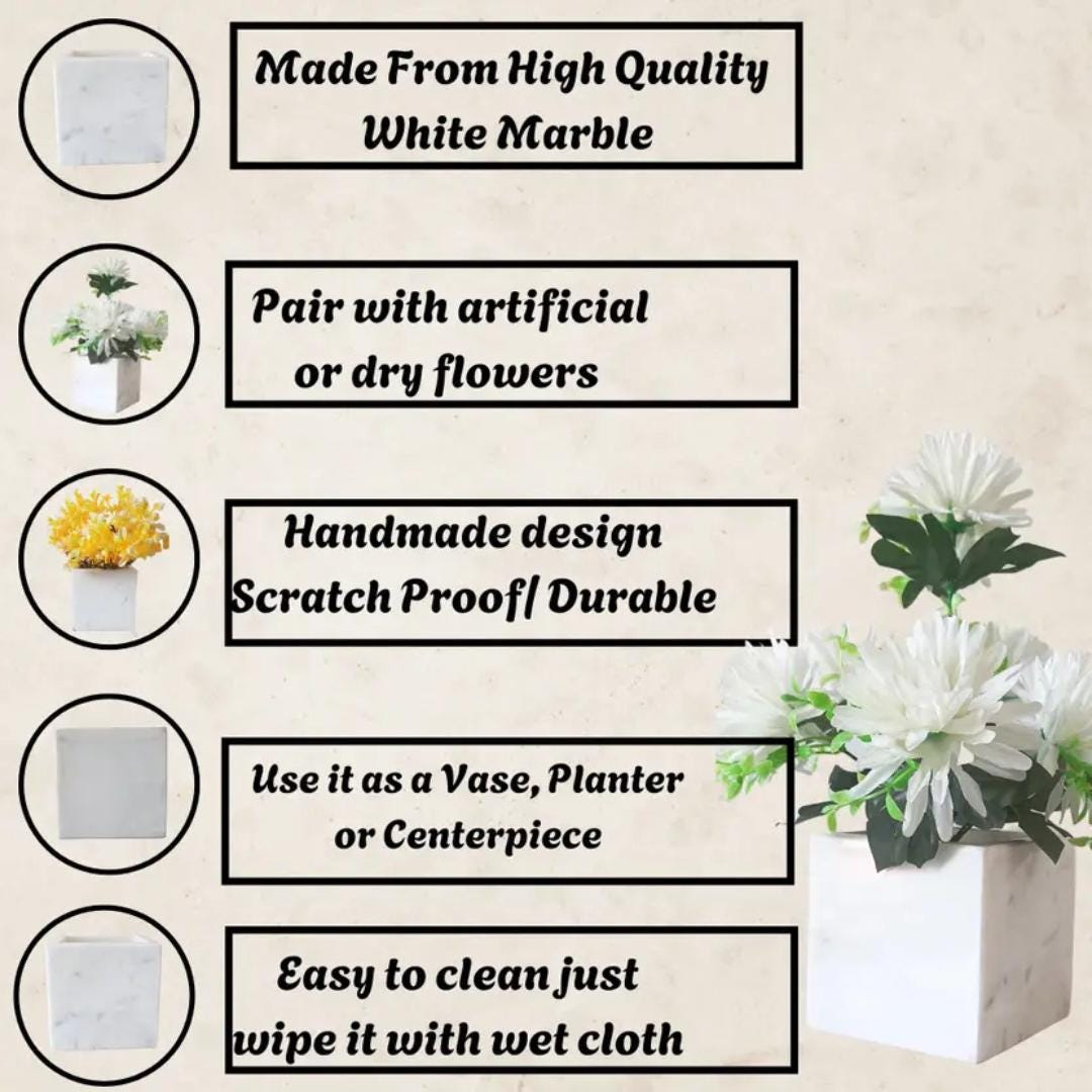 Handmade White Marble Planter Indoor Outdoor Stone Pot white Marble Vase for Plants Succulent Herb Garden Décor & Housewarming Gift