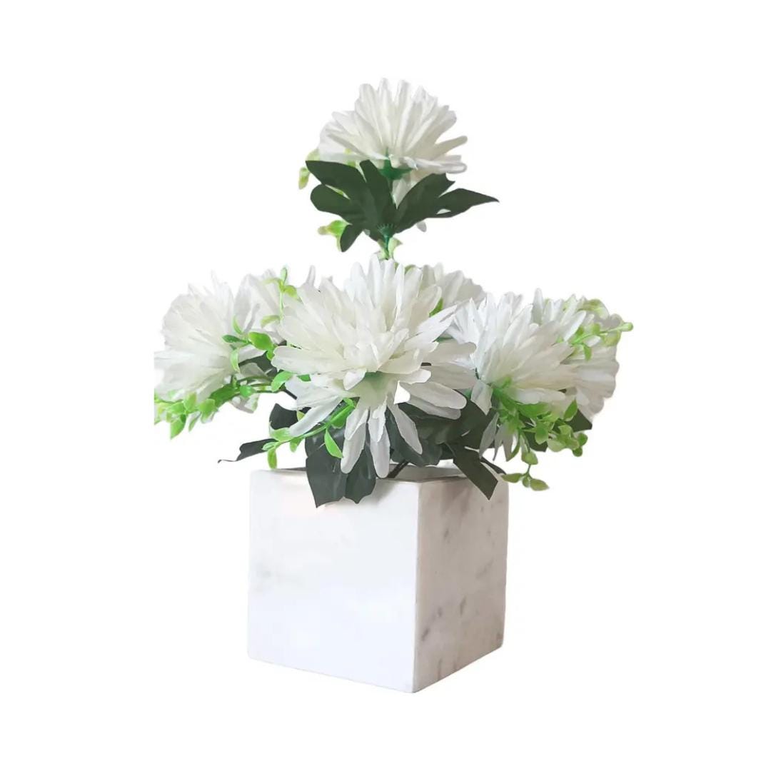 Handmade White Marble Planter - Indoor & Outdoor Stone Pot Vase for Plants