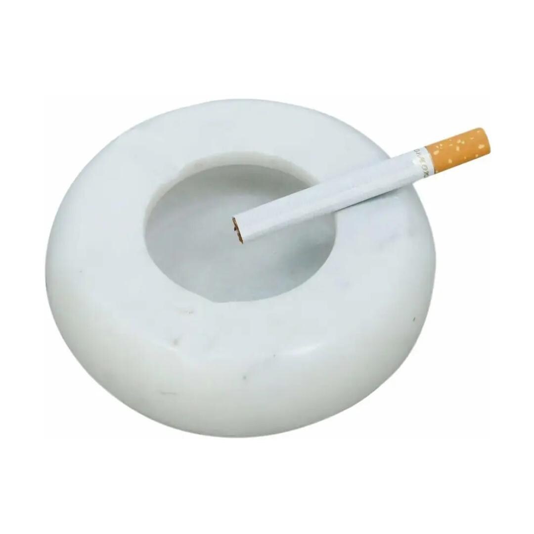 Handmade White Marble 4″ Round Ashtray – Elegant Smoking Accessory & Home Décor
