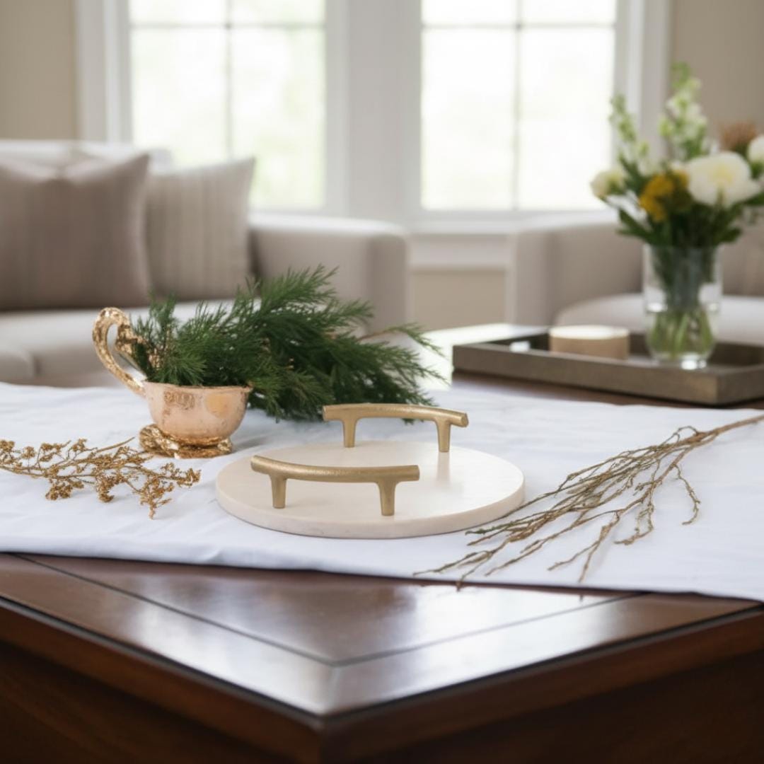 • Authentic marble construction ensures each tray has unique veining and natural patterns — a signature of quality craftsmanship. • Gold metal handles add a luxurious touch and easy grip for serving and carrying. • Timeless design complements modern, contemporary, rustic, and classic décor styles.