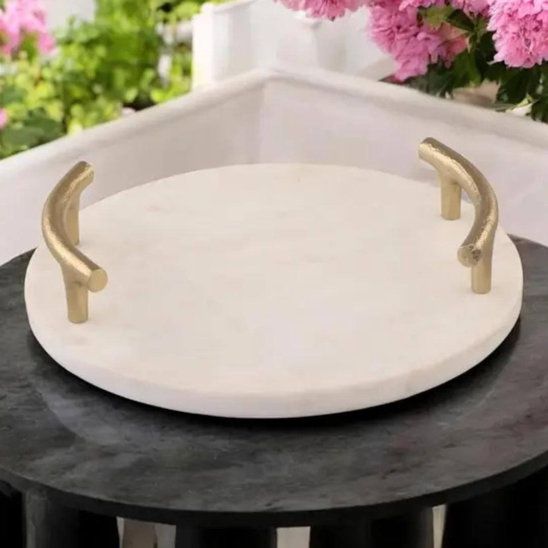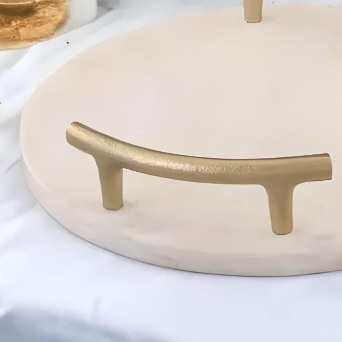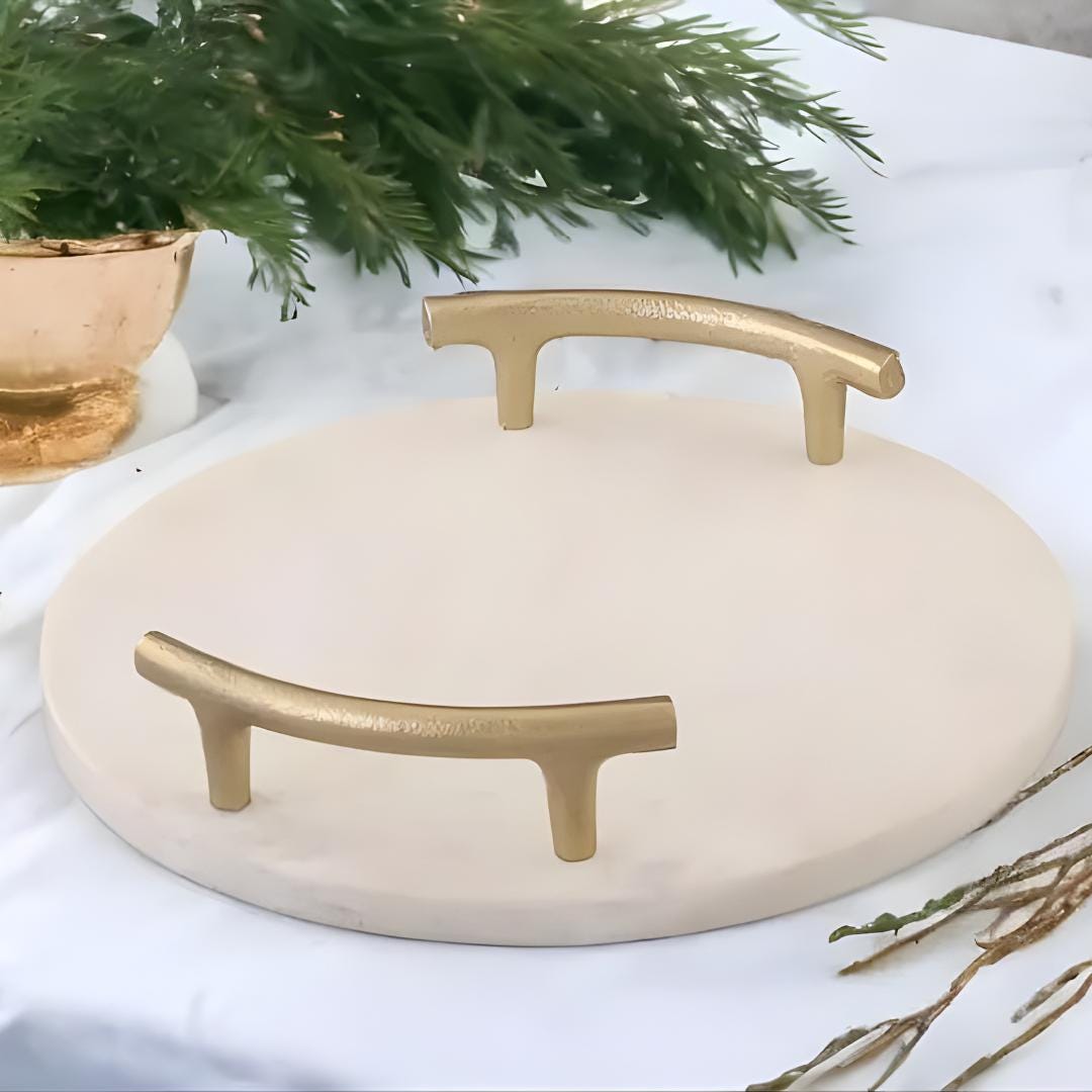 Handcrafted White Marble Serving Tray with Gold Handles – Elegant Entertaining Platter & Stylish Home Décor Accent