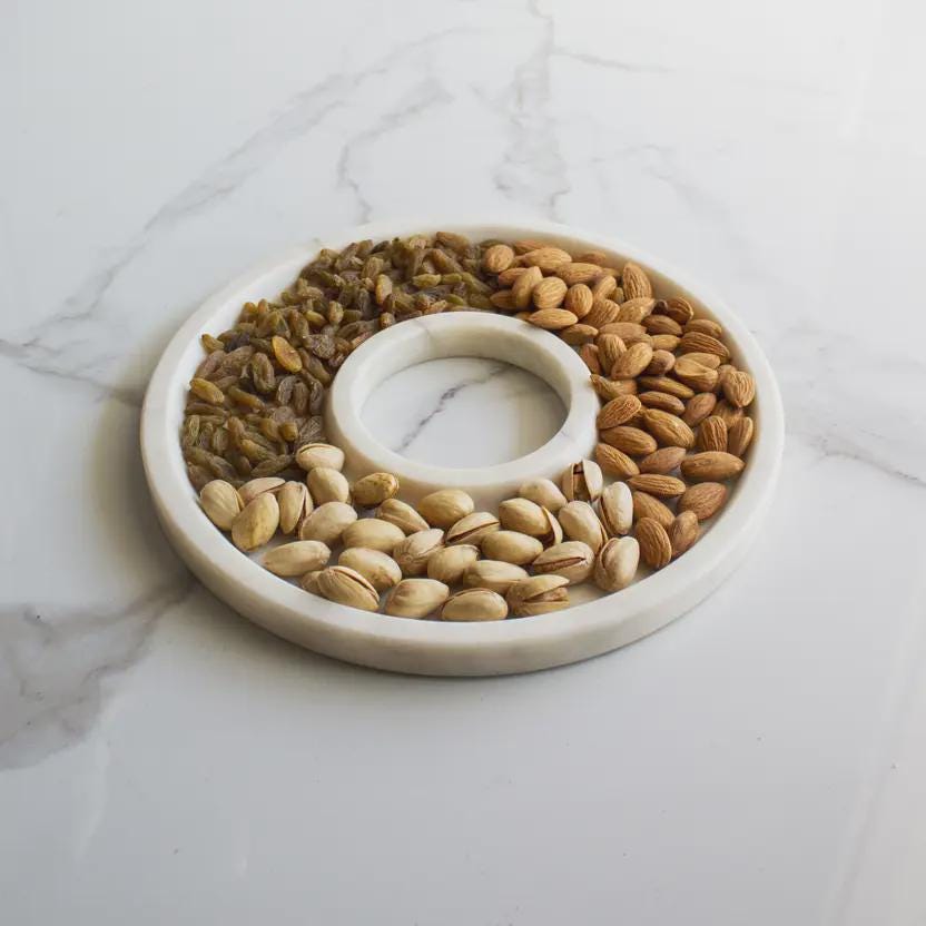 Each platter is handcrafted by skilled artisans using authentic White Indian Marble, known for its durability, smooth matte finish, and natural veining. Every piece is unique, making your platter truly one-of-a-kind.