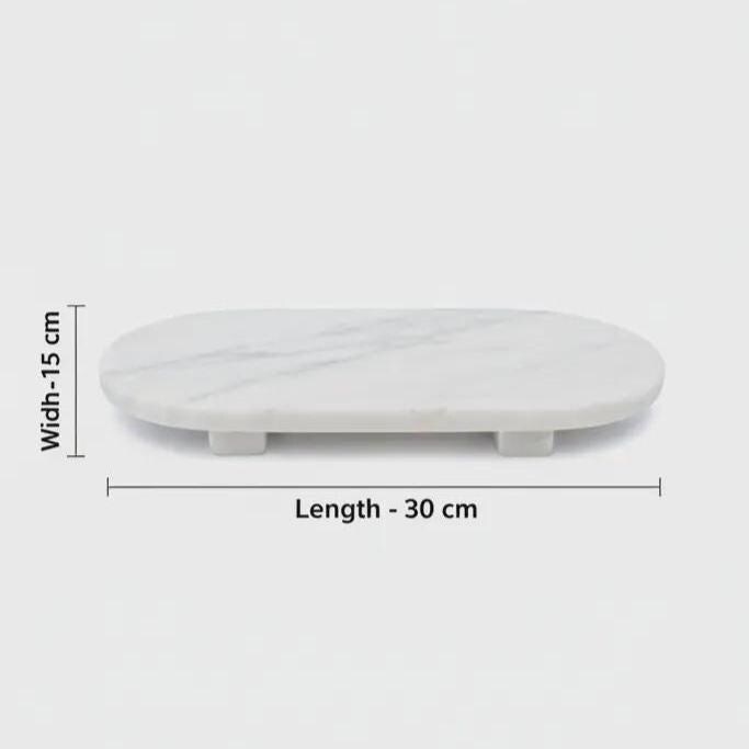 Handmade White Marble Oval Tray Stand for Bathroom Vanity Jewelry Perfume Soap Serving Home Decor