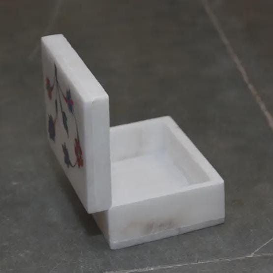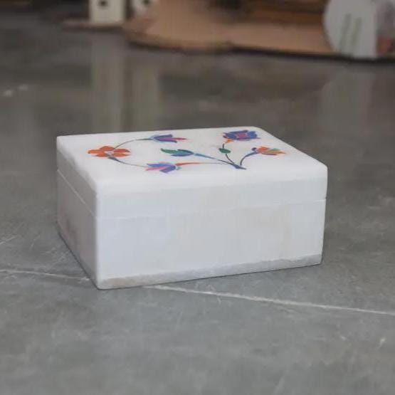 Inlay work is a traditional decorative art where small pieces of colored stones, shells, or metals are precisely carved and embedded into a marble surface to form beautiful floral, geometric, or figurative designs. This art is called Pietra Dura and is known for its durability and stunning visual appeal. It requires immense skill and patience to ensure every piece fits flawlessly, flush with the surface.