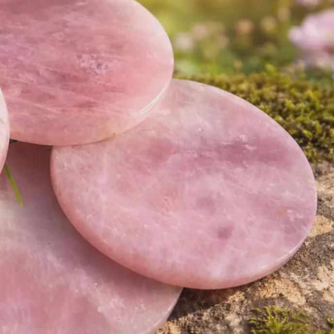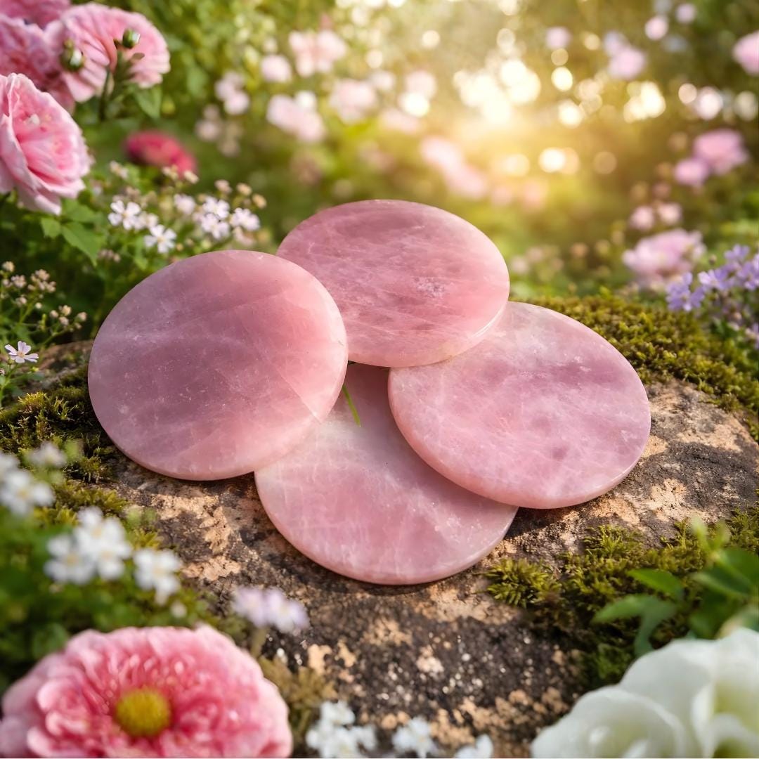 Add a touch of natural elegance and calming crystal energy to your home with this beautiful Set of 4 Polished Rose Quartz Coasters. Handcrafted from 100% natural rose quartz, these luxury crystal coasters combine functionality with spiritual beauty, making them a stunning addition to your coffee table, dining table, bar, or office desk.