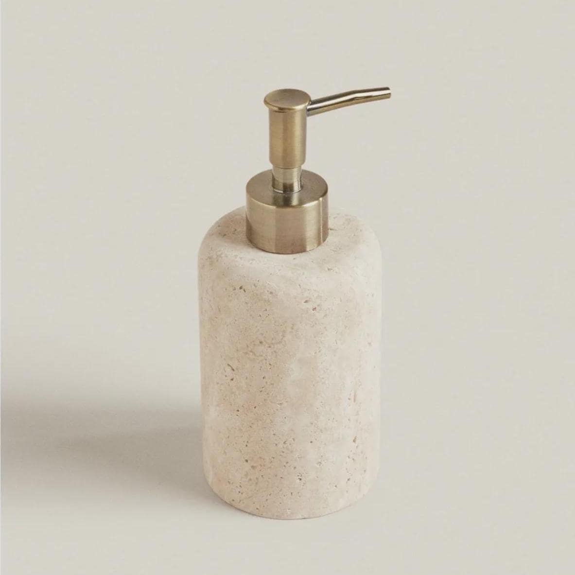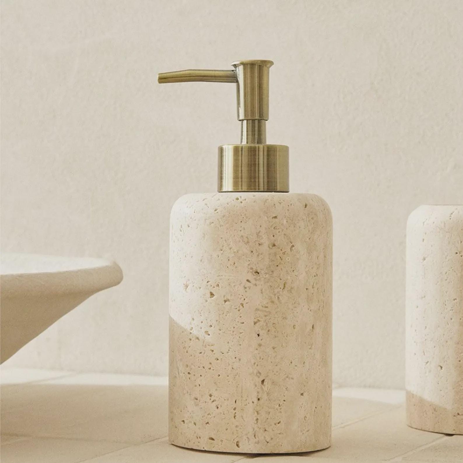 Minimalist Travertine Soap Dispenser | Natural Beige Stone Pump | Modern Luxury Bathroom & Kitchen Decor