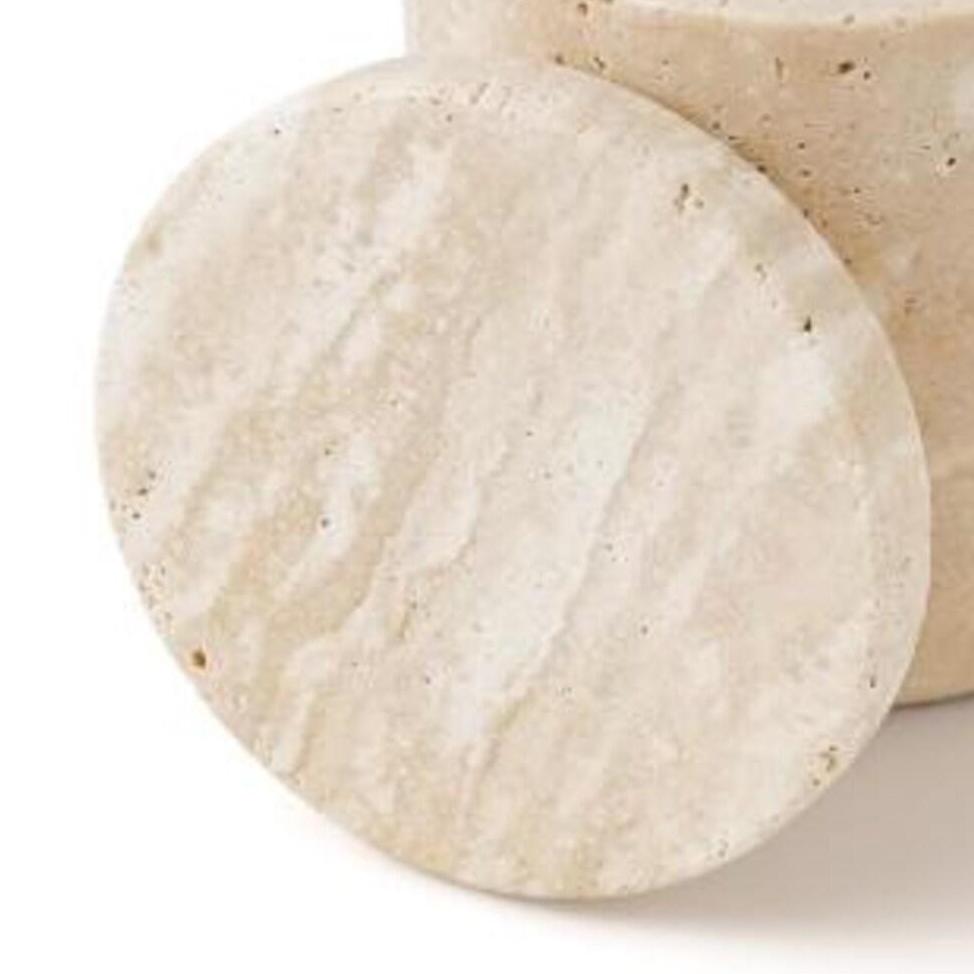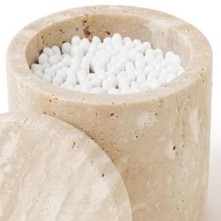 Each jar is hand‑carved and unique, showcasing the authentic beauty of travertine stone with natural variations in color and veining that make every piece one‑of‑a‑kind. Designed with a snug‑fitting lid, this jar keeps contents discreetly stored, clean, and stylishly displayed.