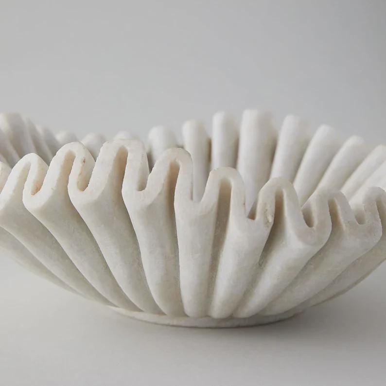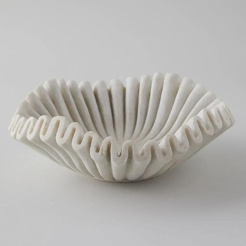 Scallop Marble Decorative Bowl – Natural Stone Ruffle Tray & Elegant Home Decor Accent (9 Inches)