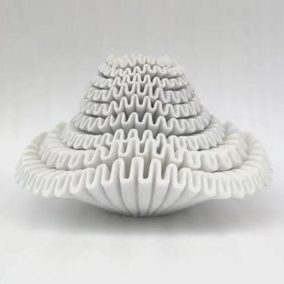 • Natural Marble Stone: Each piece showcases unique marble veining and natural texture. • Scallop Shell Design: Elegant ruffle shape inspired by coastal forms. • Multipurpose: Works as a decorative bowl, jewelry dish, catchall tray, or small fruit/soap dish. • Durable & Timeless: Heavy stone with lasting beauty. • Artisanal Look: Every piece is one‑of‑a‑kind with natural variations.