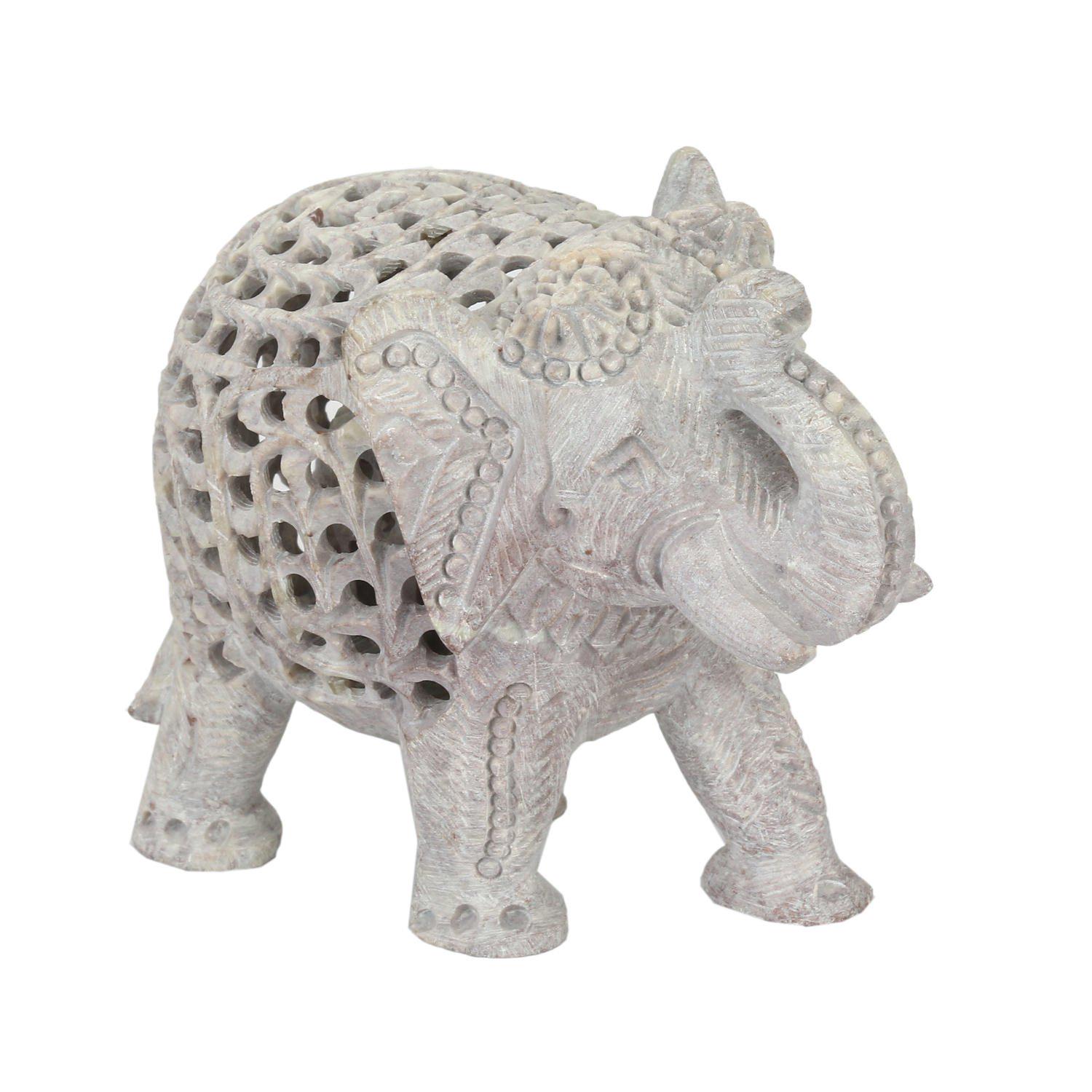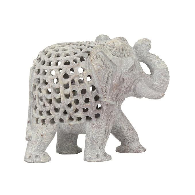Hand Carved Soapstone Elephant Statue | Antique Stone Figurine | Handmade Home Decor & Housewarming Gift