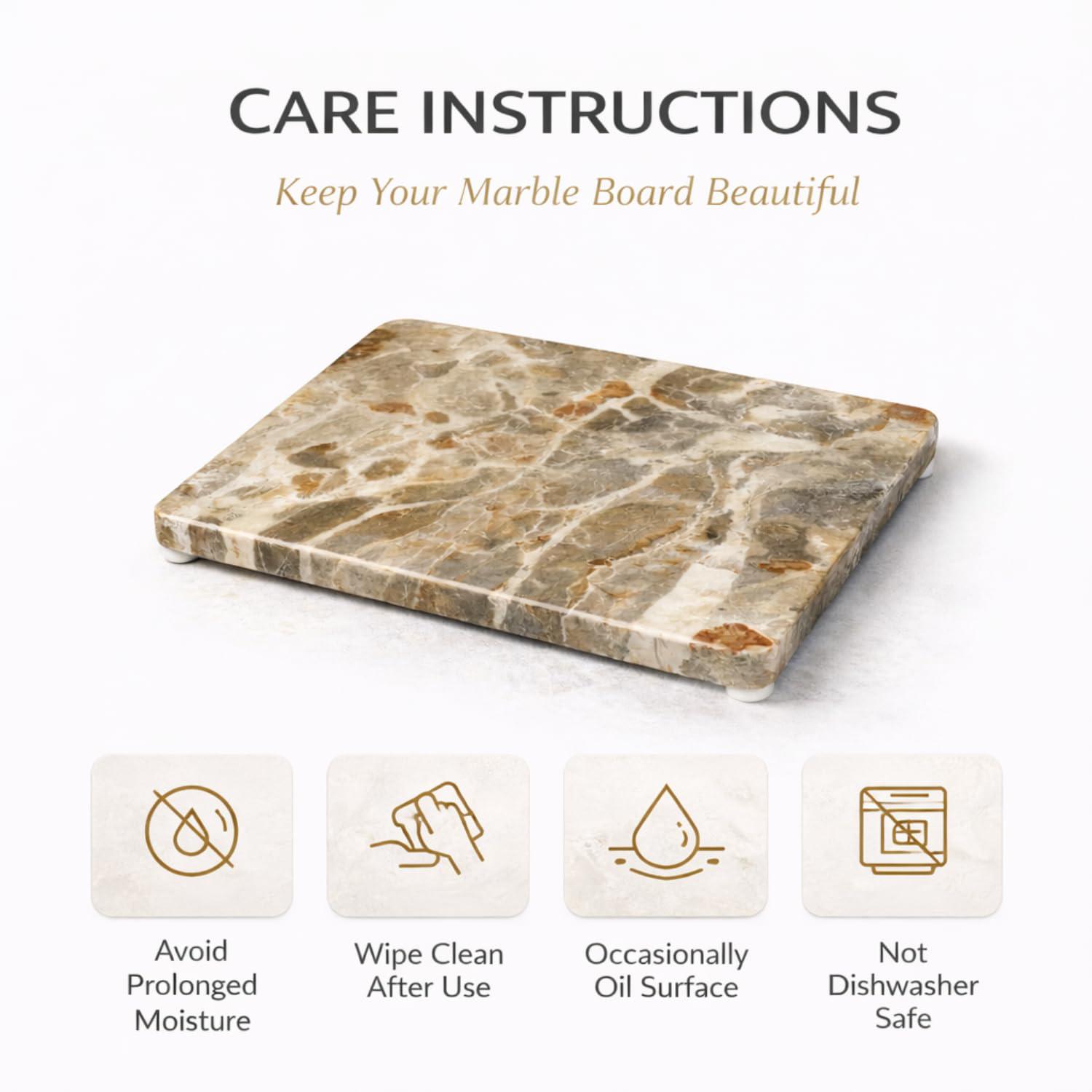 This beige marble board features a naturally cool surface, making it ideal for pastry, pizza dough, fondant, and baking prep. It also works perfectly as a heat-resistant trivet for hot pots, pans, and bakeware—helping protect your countertops from heat damage, stains, and scratches.