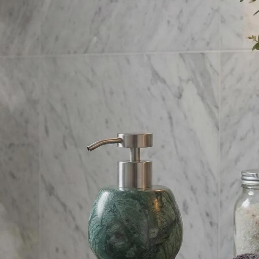 Handcrafted from 100% natural green marble, this stone soap pump is both functional and decorative. The rich green tones and unique natural veining ensure that each piece is truly one-of-a-kind. The smooth, curved silhouette offers a modern yet organic aesthetic, perfect for spa-inspired interiors.