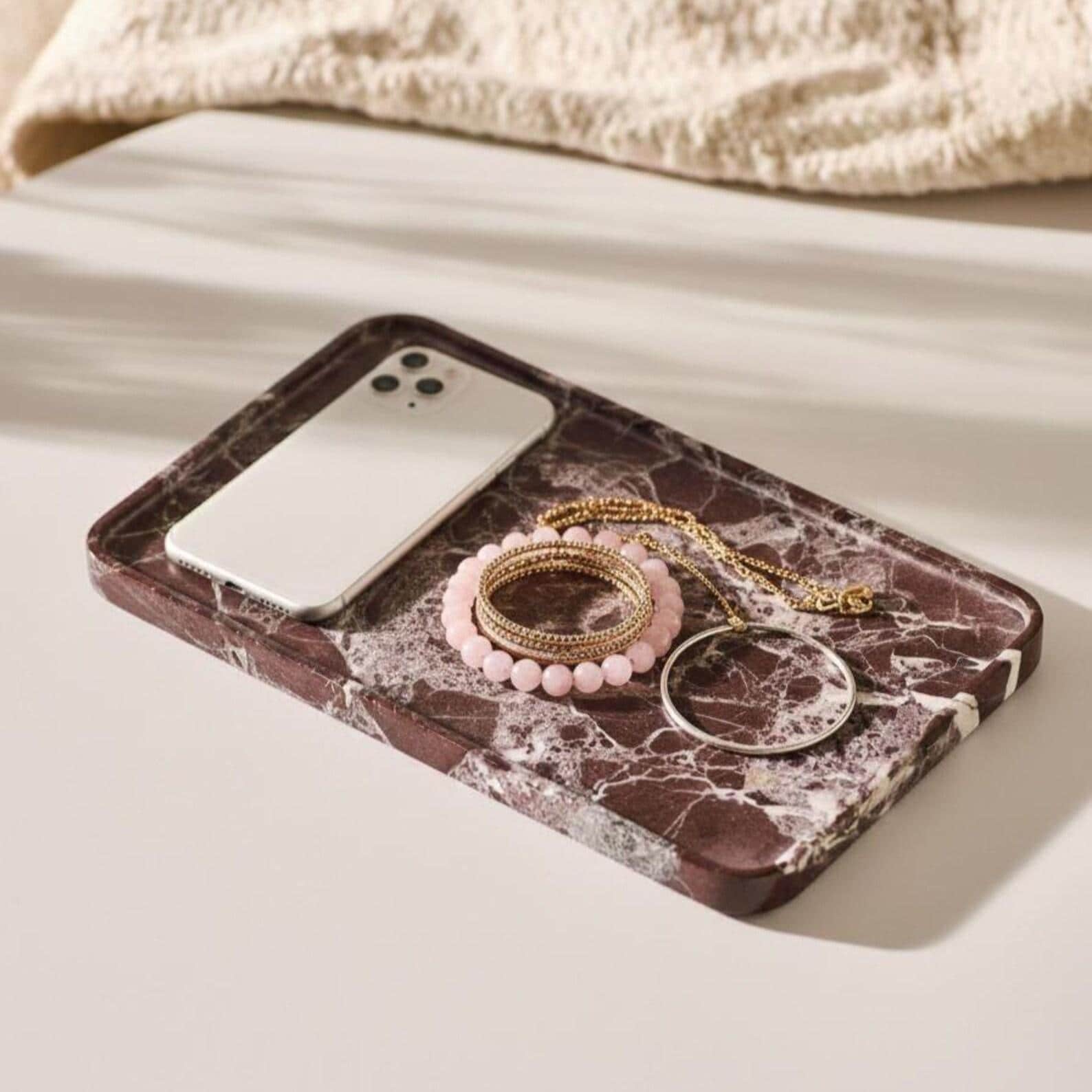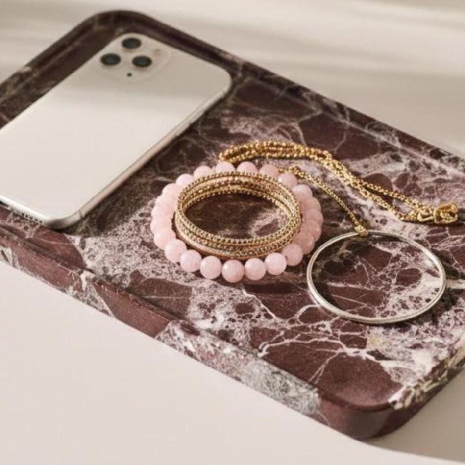 Luxury Rosso Levanto Marble Catchall Tray | Red Marble Jewelry Dish & Vanity Organizer | Modern Home Decor