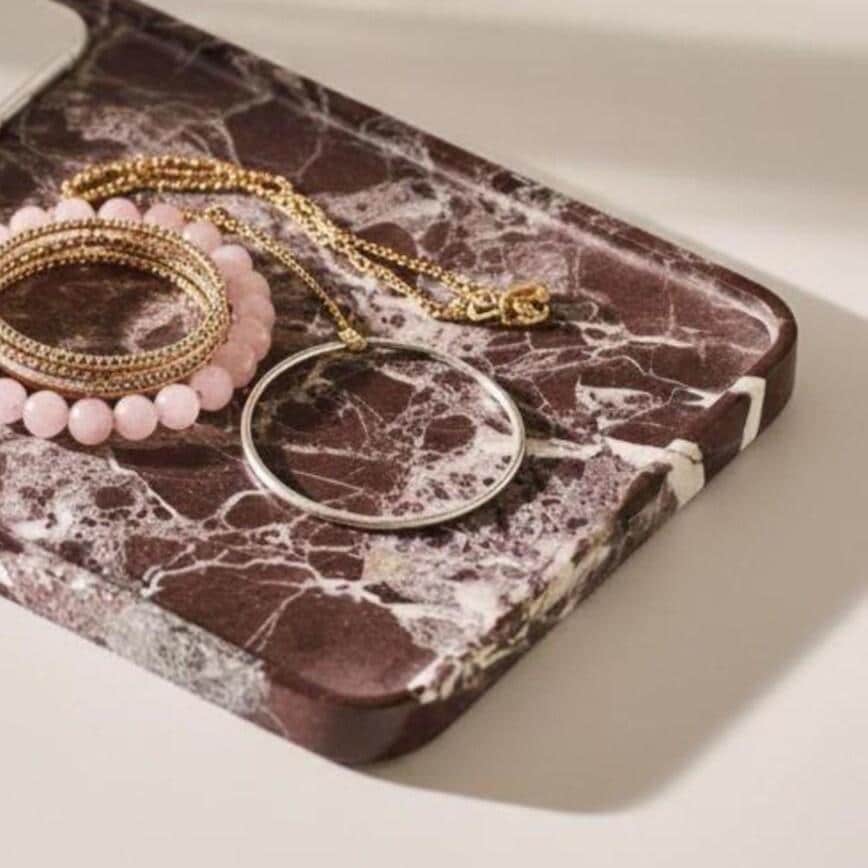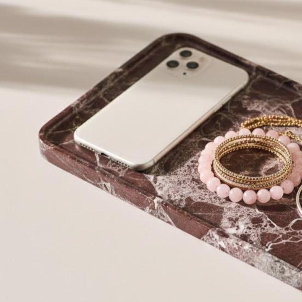 • Material: Natural Rosso Levanto Marble • Color: Burgundy red with white veining • Finish: Hand-polished stone • Handmade: Yes • Use: Decorative organizer tray