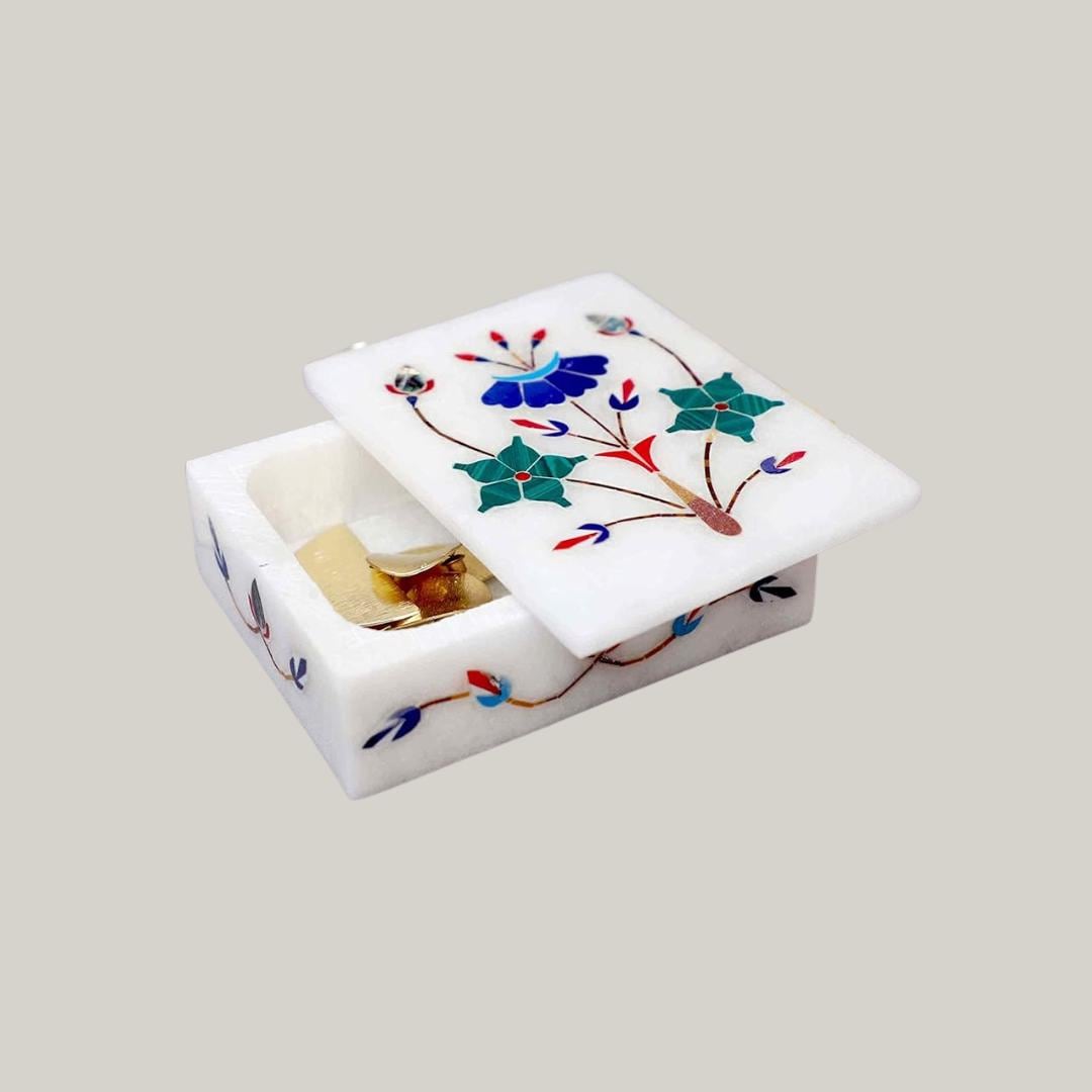 Each piece is handcrafted, making every box unique with slight natural variations in marble veining and inlay work — a mark of authentic handmade artistry.