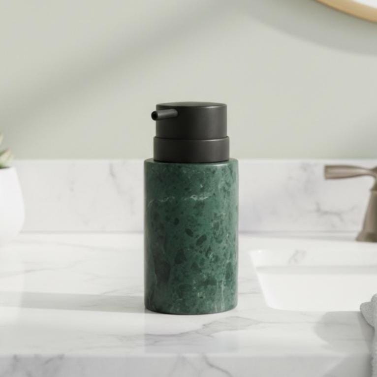 Bring natural luxury to your sink with this handcrafted green marble soap dispenser, carved from solid natural stone. Featuring rich green tones and organic veining, this elegant dispenser instantly upgrades your bathroom or kitchen with a spa-inspired, high-end look.