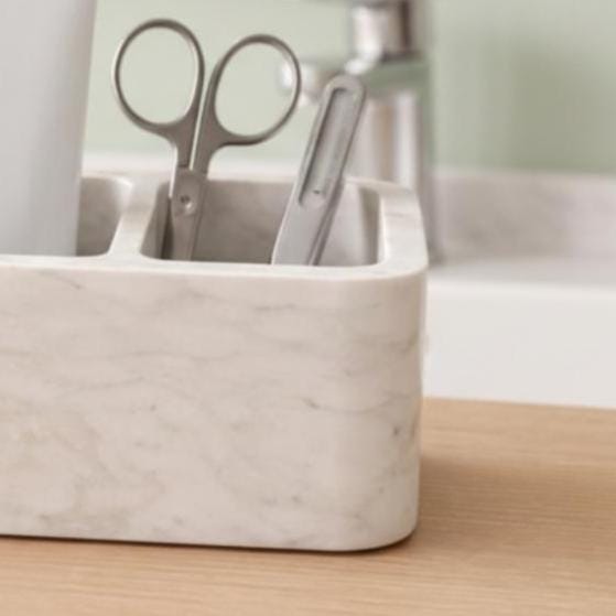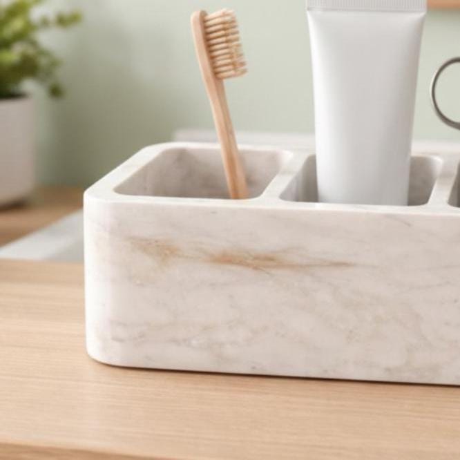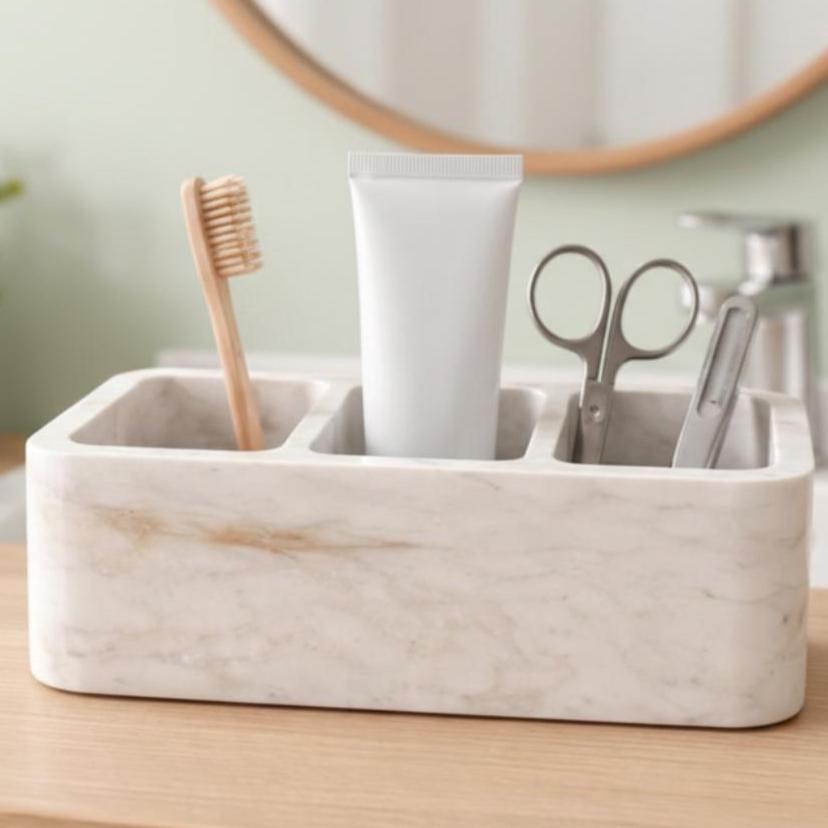 ✔ Genuine white marble — natural, durable, and elegant ✔ Three compartments for organized storage ✔ Smooth polished finish with unique stone patterns ✔ Versatile design for bathroom, vanity, kitchen or entryway ✔ Durable and stylish — a practical decorative accent ✔ Each piece is unique — natural veining may vary