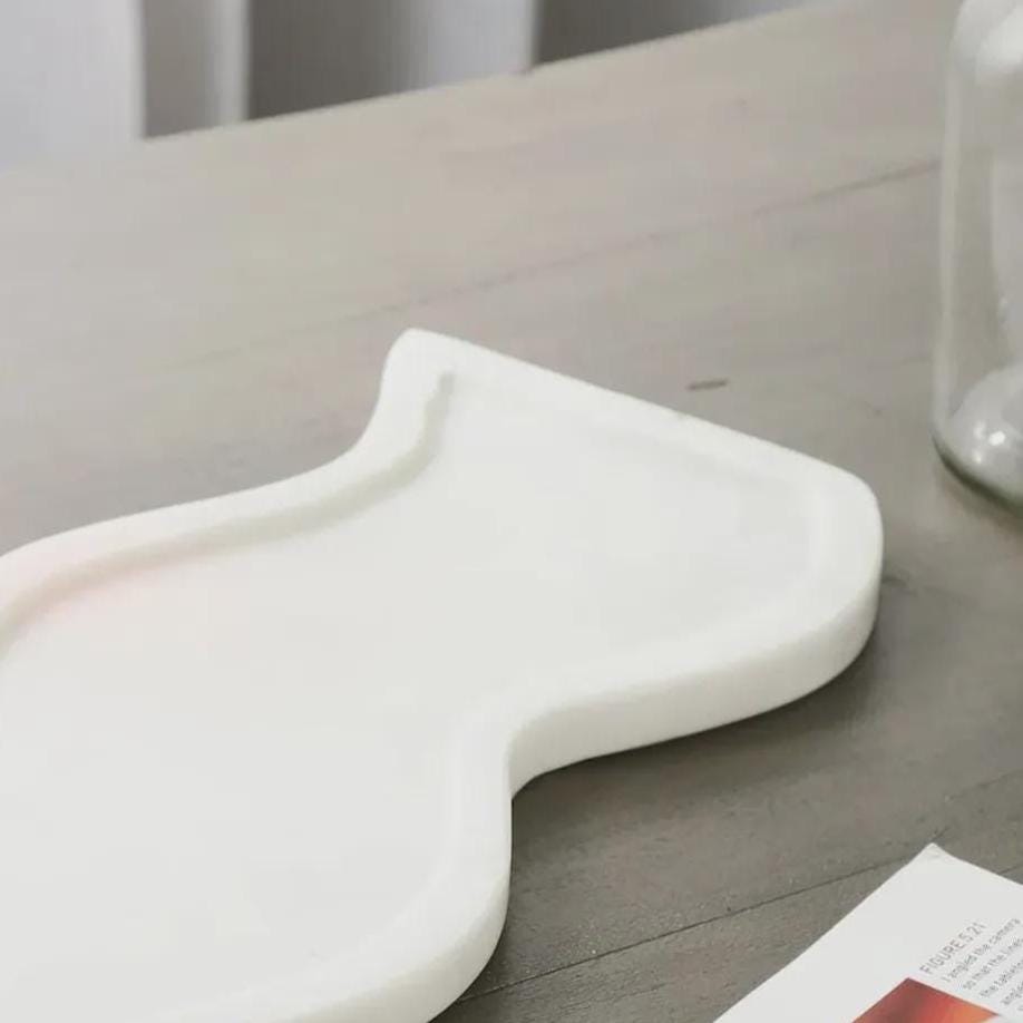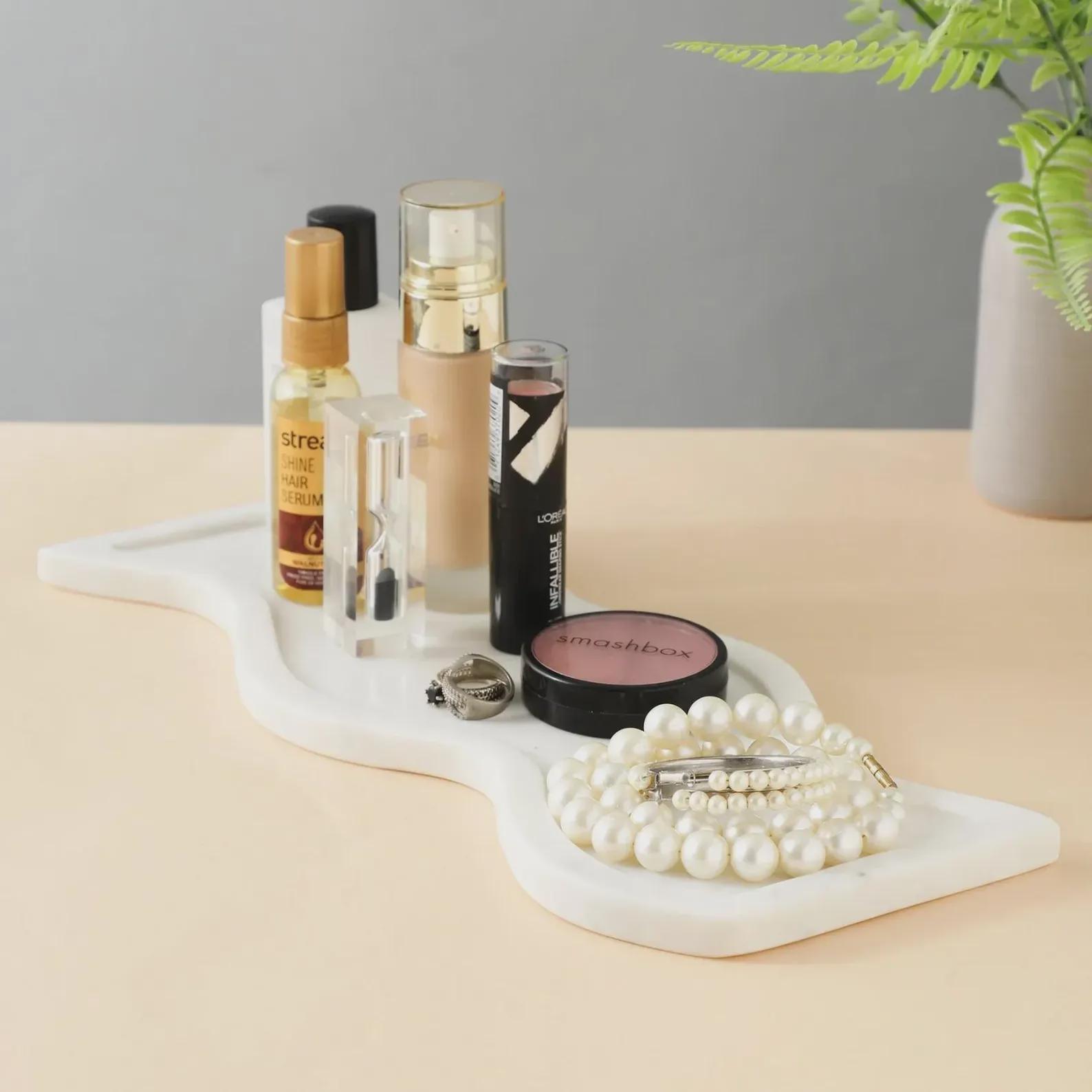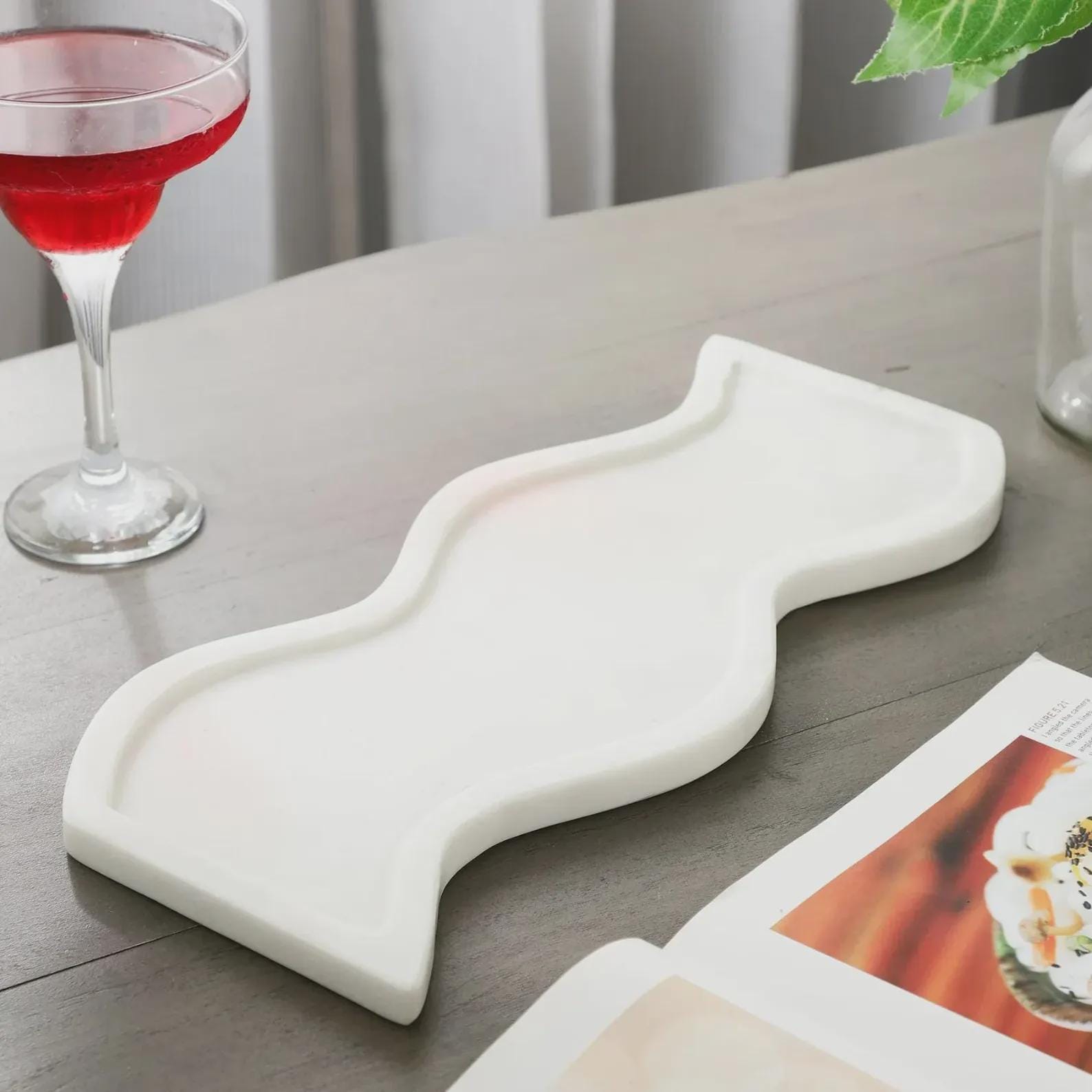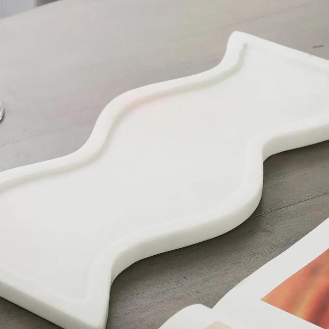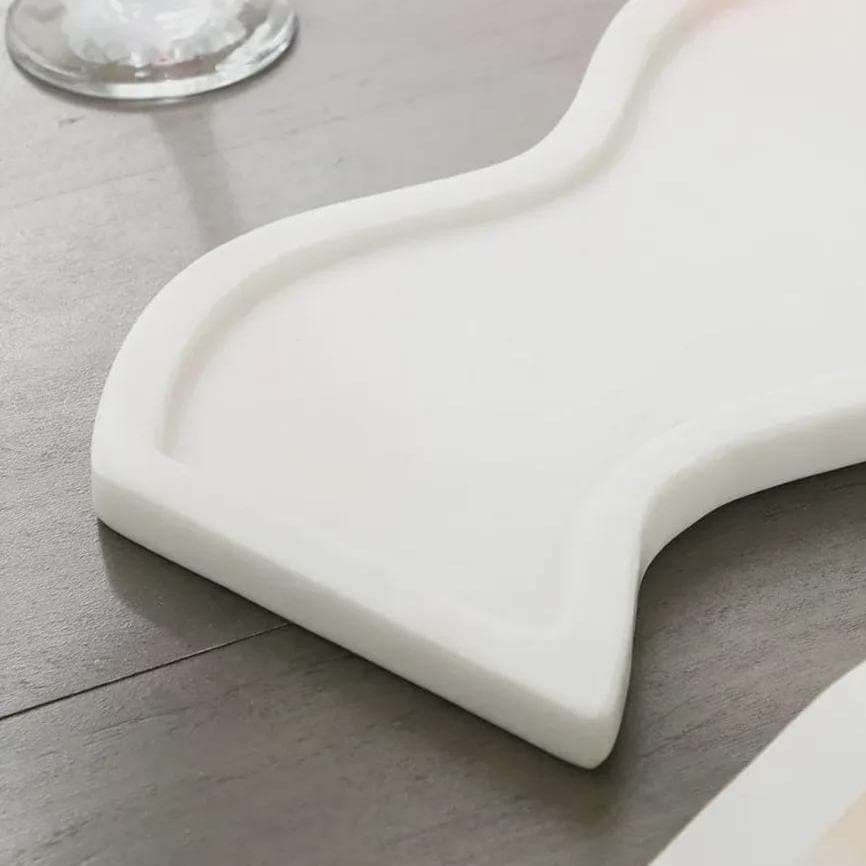 Handmade White Marble Wavy Serving Tray – Luxury Stone Platter & Decorative Organizer