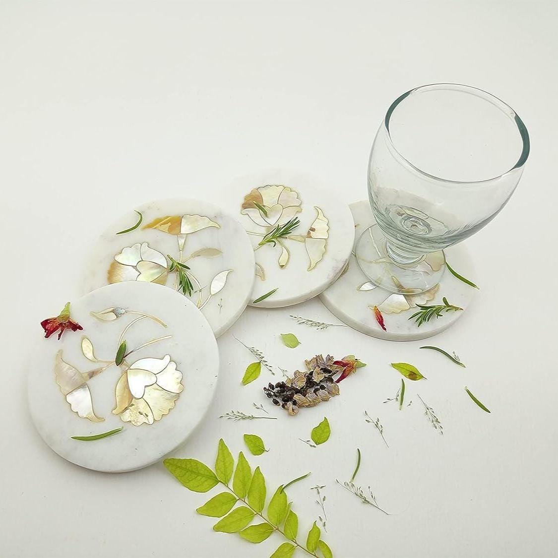 Perfect for hot and cold drinks, these coasters combine functionality with artistic beauty, making them ideal for everyday use or special occasions.