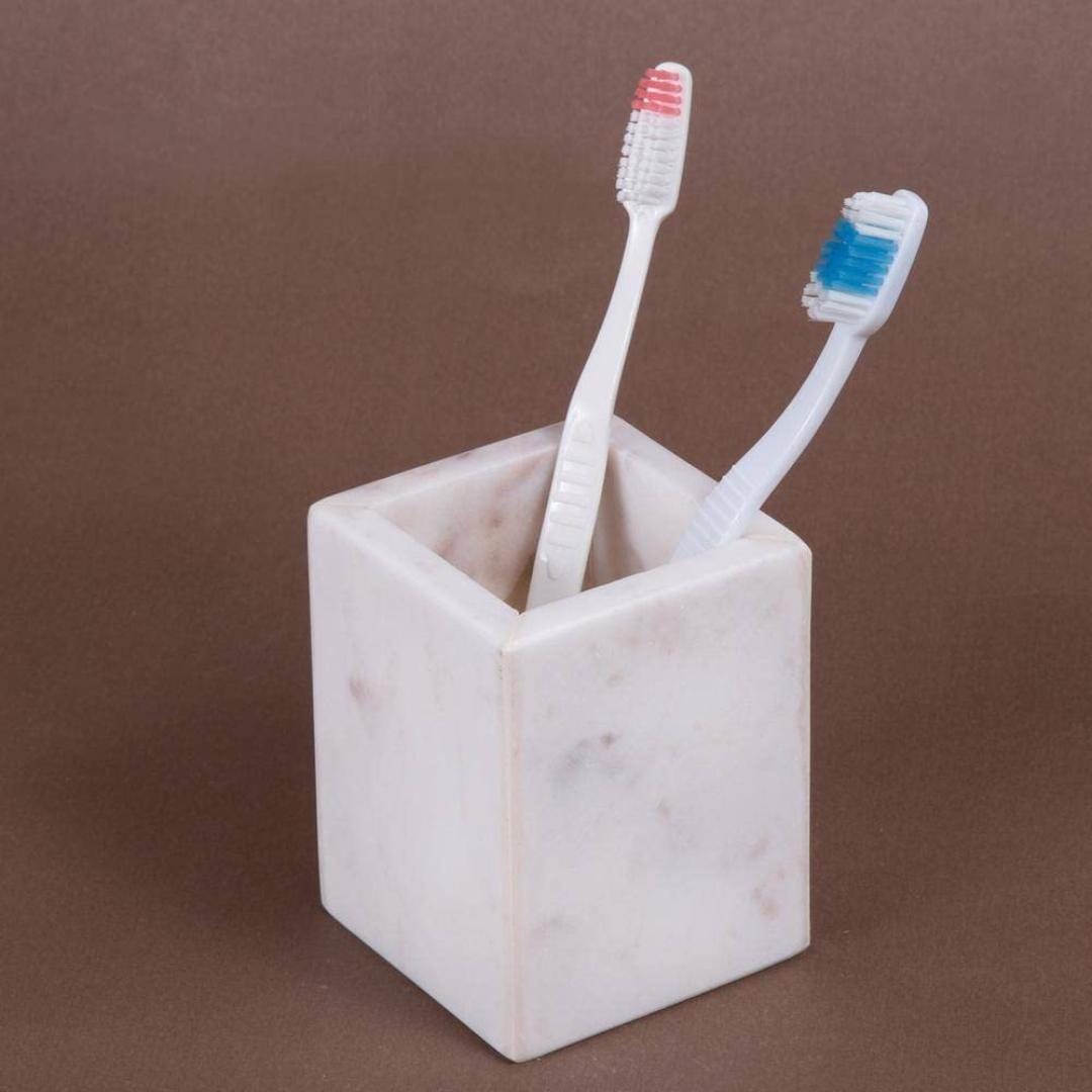 Handmade Natural Marble Toothbrush Holder | Stone Bathroom Organizer | Sustainable Toothpaste Cup Stand | Rustic Spa Decor Gift