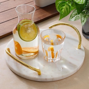 Crafted from high-quality natural marble, this tray features unique veining and a smooth polished finish. Marble’s durability makes it both functional and decorative, while its weight ensures stability on countertops and tables. Easy to clean — just wipe with a damp cloth to maintain its beauty.
