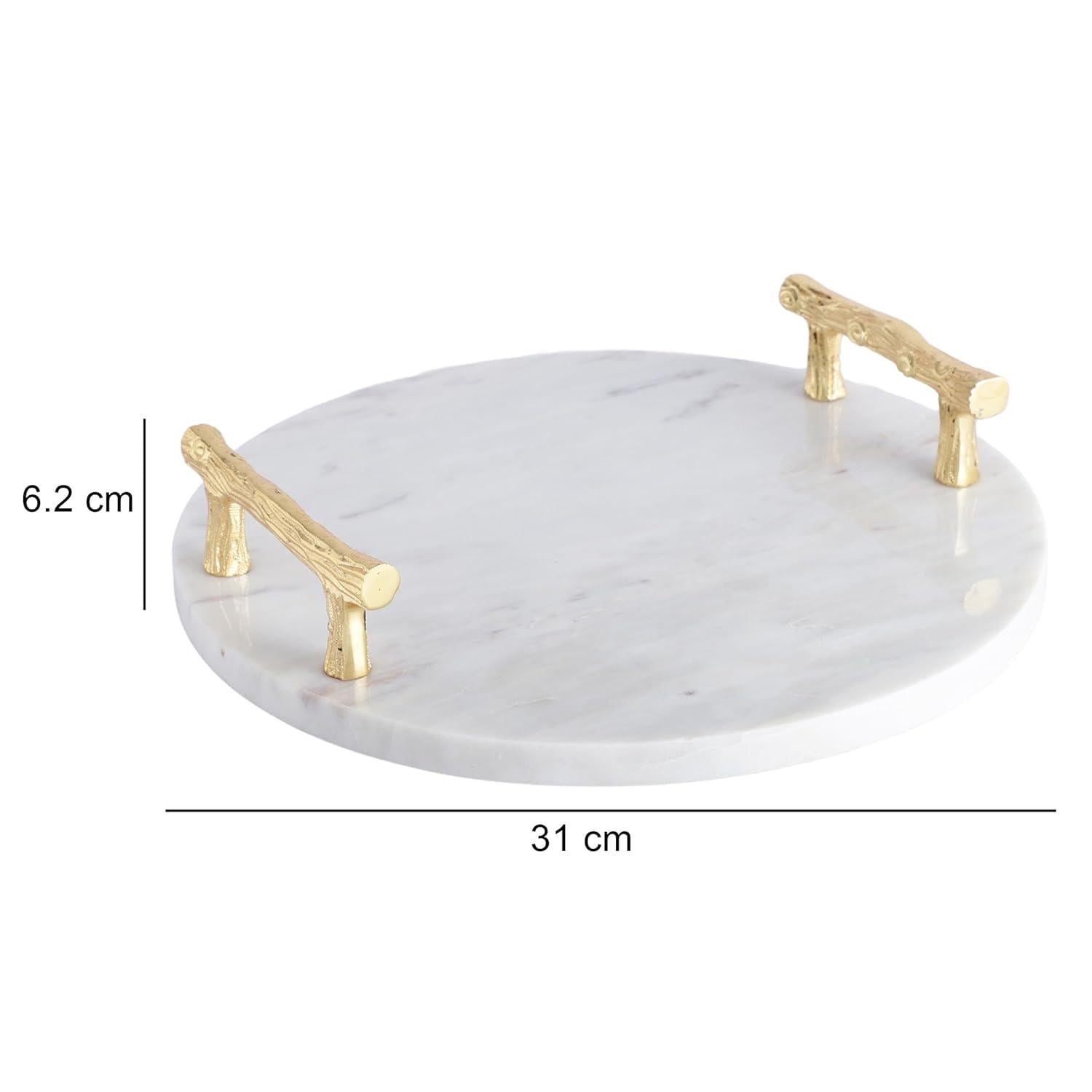 Elevate your home décor and entertaining experience with this Handmade Round Marble Vanity & Serving Tray featuring a luxurious gold metal handle — a perfect blend of style and function. Crafted from high-quality natural marble and polished for a smooth, sophisticated finish, this tray adds a touch of timeless elegance to any space.