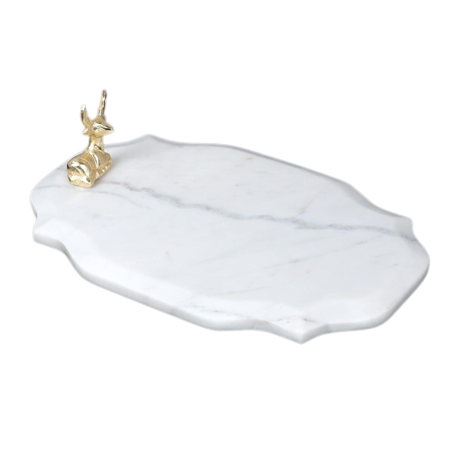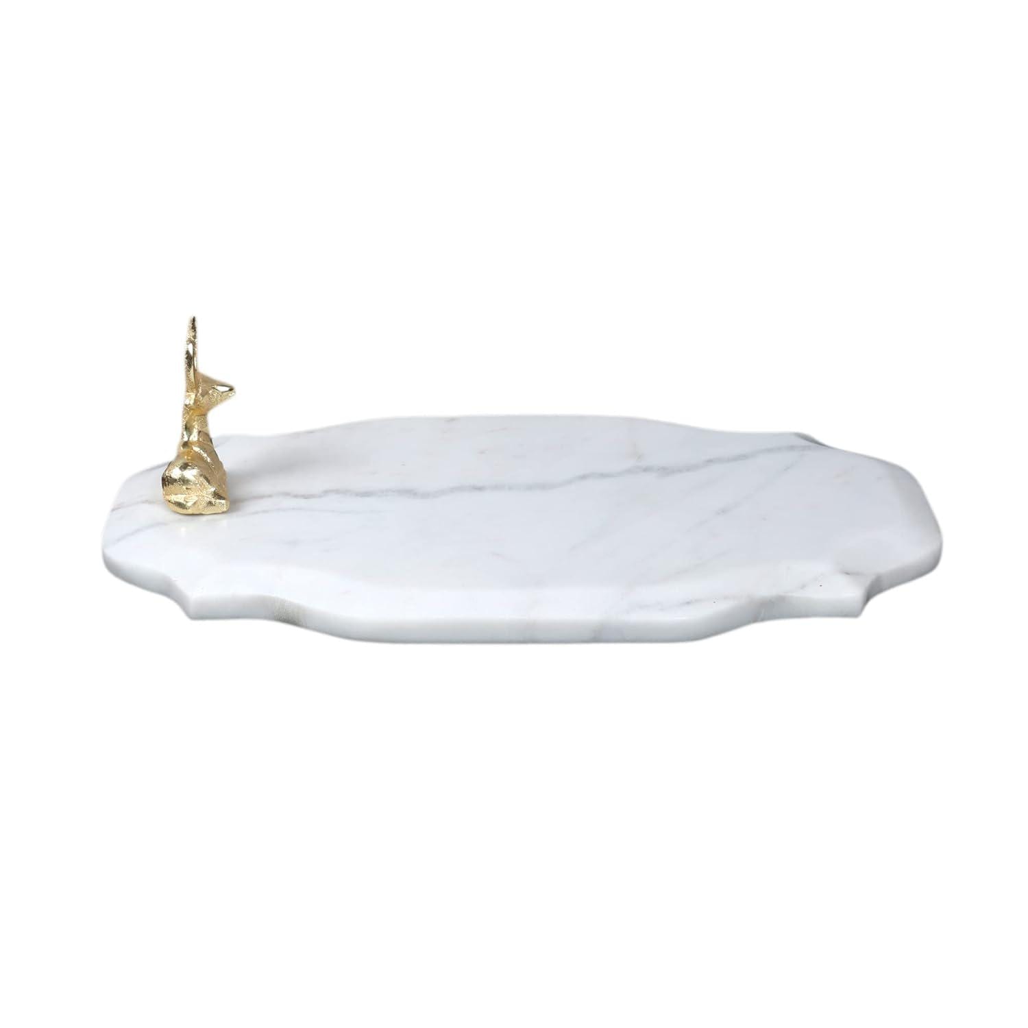 Elevate your entertaining and décor with this Handmade Marble Platter with Gold Finish Metal Accent — a refined blend of timeless natural stone and modern metallic style. Crafted from premium marble and adorned with a luxurious gold-tone metal piece, this versatile tray is perfect for serving appetizers, desserts, cheeses, fruits, and more while adding a touch of elegance to your tabletop.