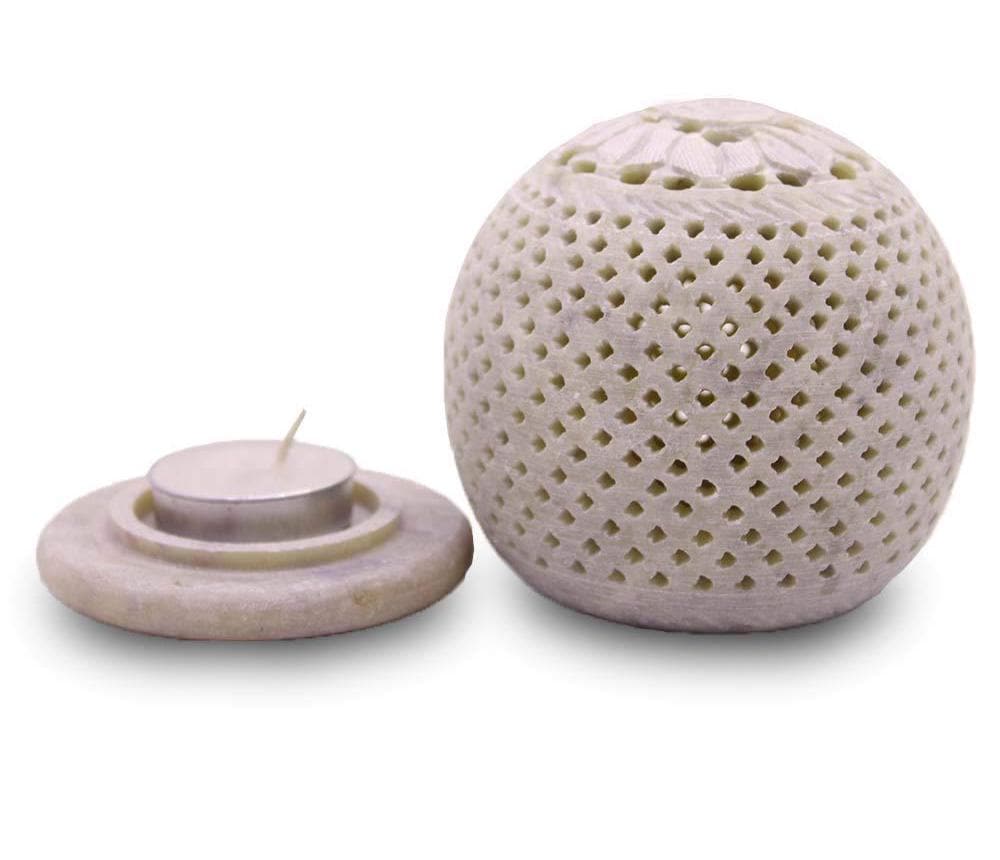 Handcrafted Marble/Soapstone Tea Light Holder with Jaali Lattice | Ethnic Diya Candle Decor for Home, Weddings & Gifting