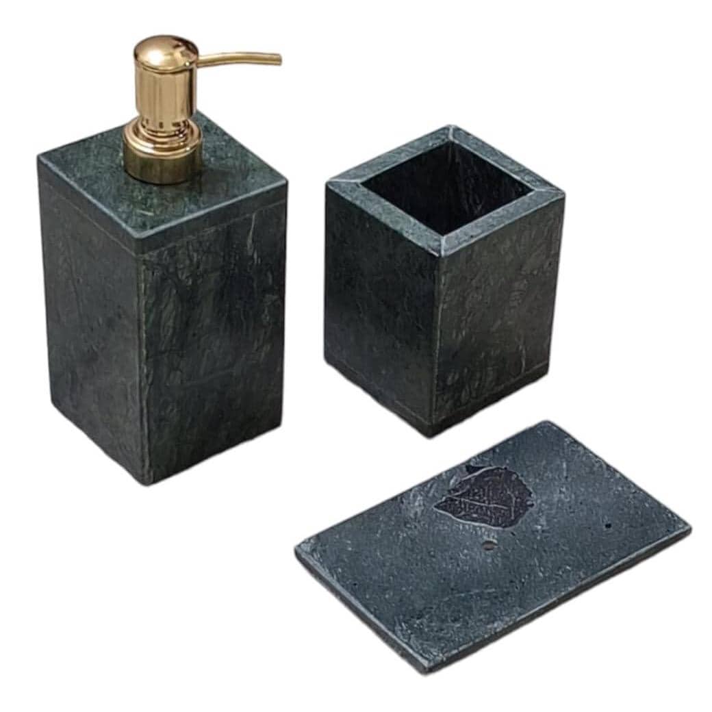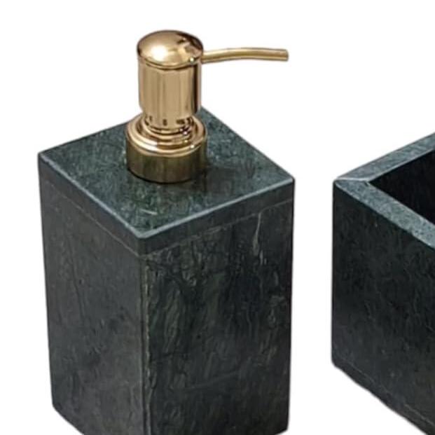 This 3-piece natural stone set includes a soap dispenser, toothbrush holder, and soap dish, each carved from premium green marble with unique veining, ensuring no two pieces are exactly the same. Perfect for modern and classic bathrooms alike, this set blends style with function to elevate your space.