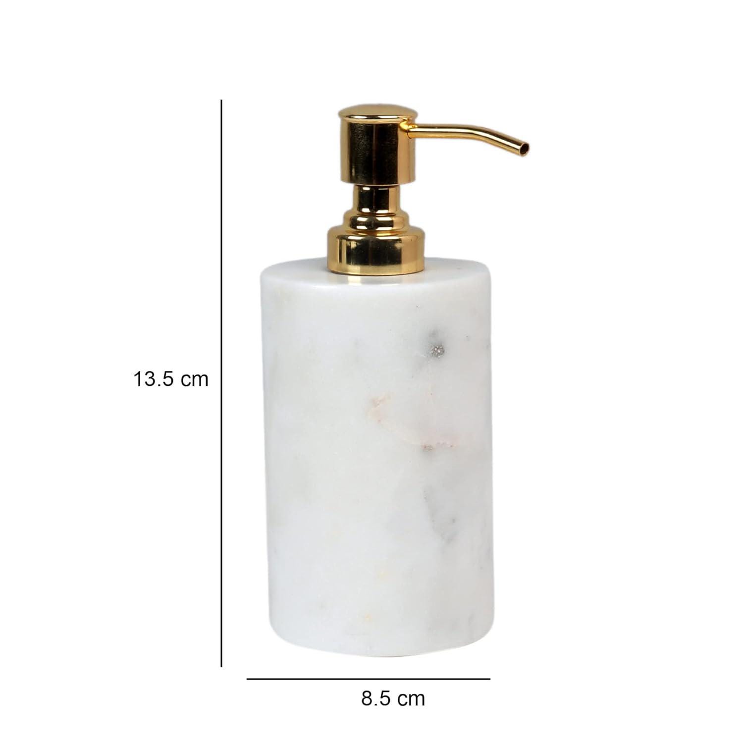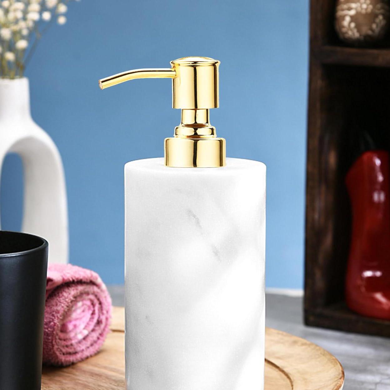 Luxury Handmade White Marble Soap Dispenser – Natural Stone Bathroom Accessory with Metal Pump – Elegant Countertop Decor
