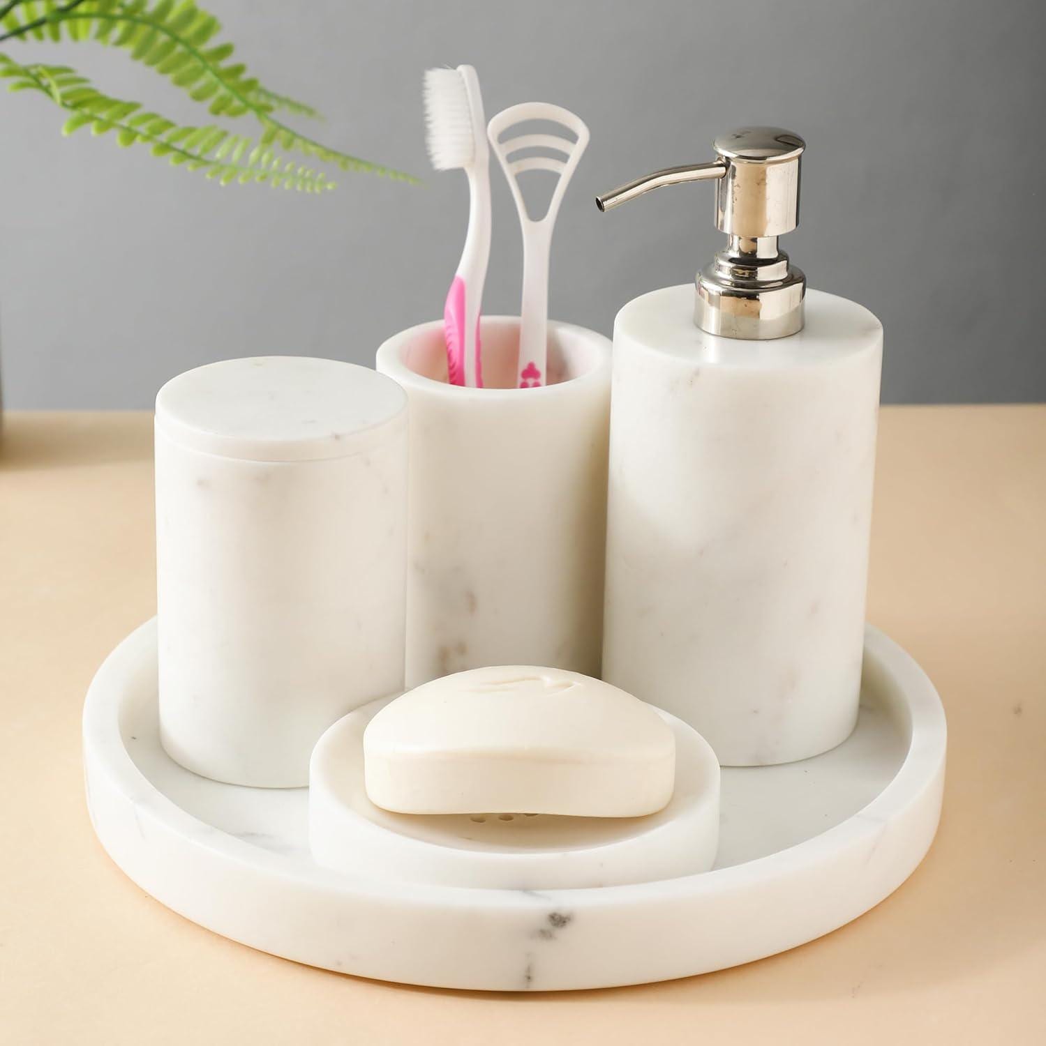 Luxury Handmade Marble Bathroom Accessory Set – Natural Stone Bath Décor with Soap Dispenser, Toothbrush Holder & More