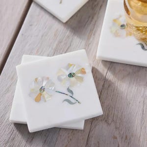 White Marble Coasters Set of 4 with Holder – Elegant, Durable Table Protection