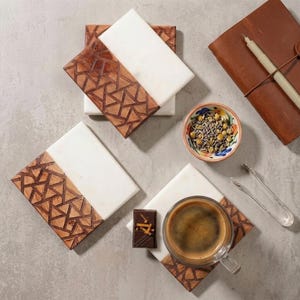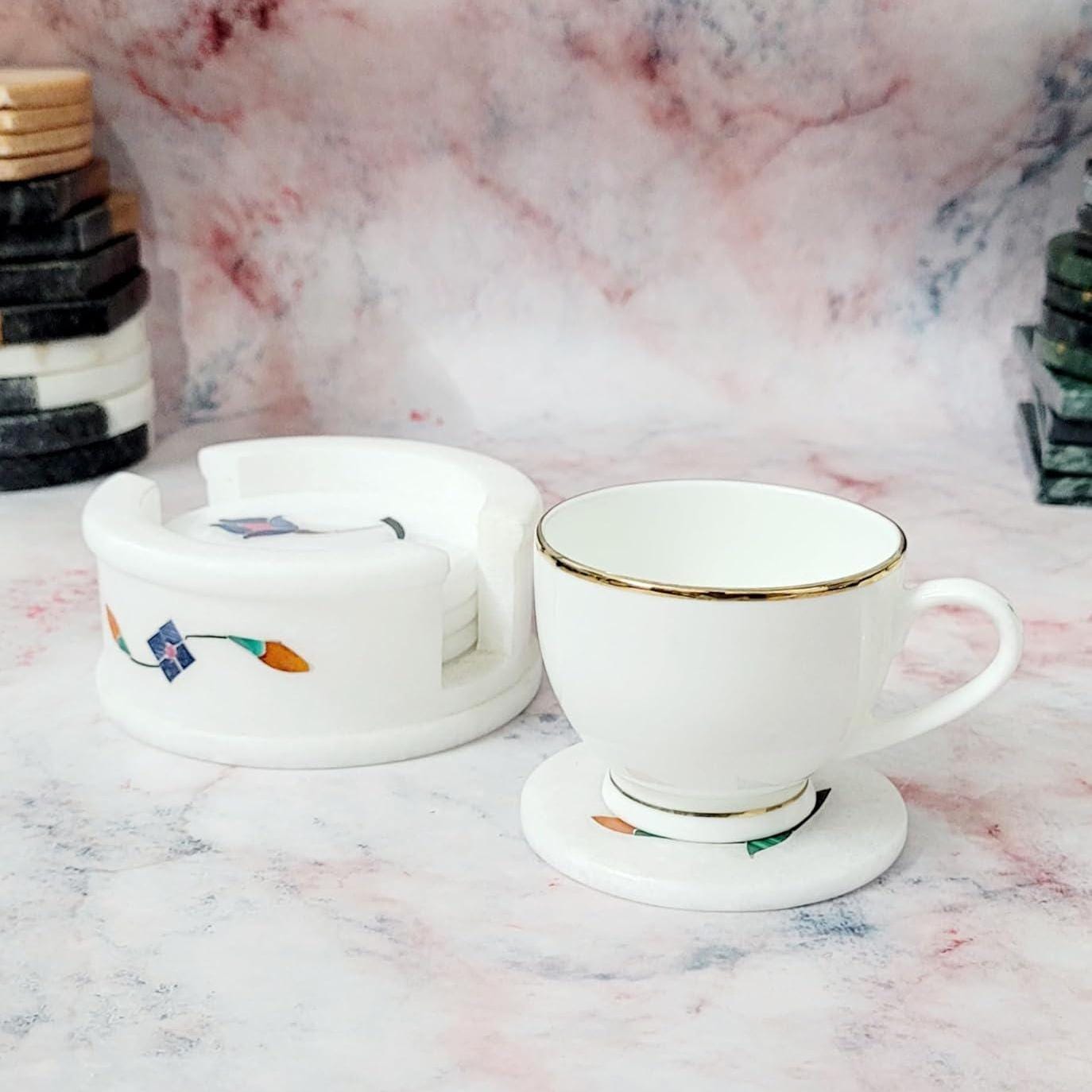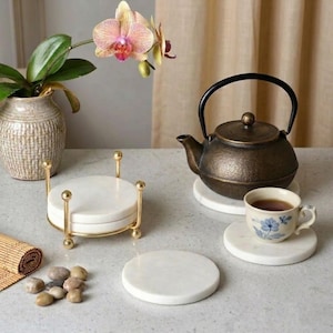 Elevate your tabletops with this Handmade White Marble Circular Drink Coasters Set — a blend of traditional artistry and everyday function. Crafted from premium natural marble, this set of round coasters protects your surfaces from heat, moisture, and drink rings while adding a refined decorative accent to your home or office.