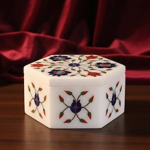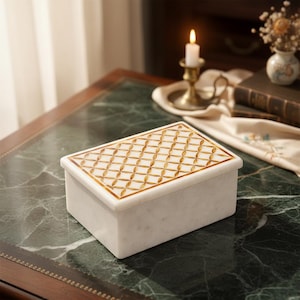 ✨ Key Features: • Perfect 6-Inch Size: Compact yet functional — fits beautifully on any dressing table, shelf, or tabletop. • Premium Marble Craftsmanship: Hand-carved from natural white marble, each box is unique with its veining and stone texture. • Functional & Stylish: Ideal for storing jewelry, trinkets, coins, or small accessories while enhancing your décor. • Perfect Gift: Thoughtful and luxurious gift for birthdays, anniversaries, housewarmings, or holidays. • Decorative Accent: Blends with modern, traditional, boho, and eclectic interiors for a timeless appeal.