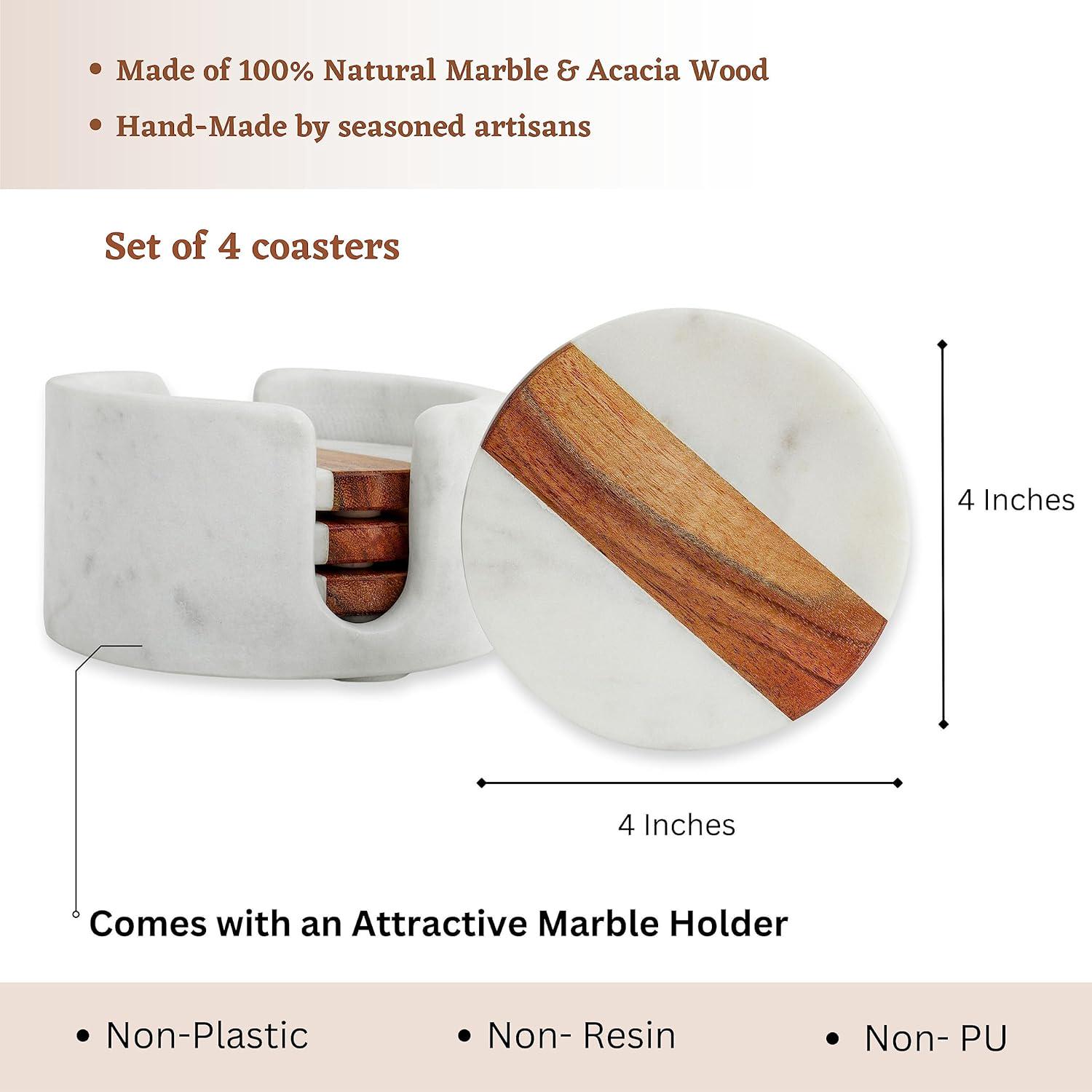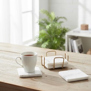 ✨ Product Highlights: • Premium Natural Marble: Each coaster is handcrafted from high-quality white marble with a smooth, polished finish that elevates your décor. • Elegant Holder Included: Comes with a matching holder to organize your coasters neatly on countertops, coffee tables, or dining tables. • Protects Surfaces: Ideal for preventing water rings, heat marks, and scratches on wood, glass, and stone surfaces — perfect for living rooms, dining areas, and offices. • Handmade Quality: Crafted with attention to detail, each piece has unique veining and pattern variation, giving your set character and artisan appeal. • Versatile Gift Idea: A thoughtful and stylish present for housewarming, weddings, birthdays, holidays, or host/hostess gifts.