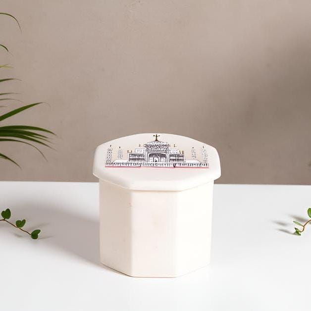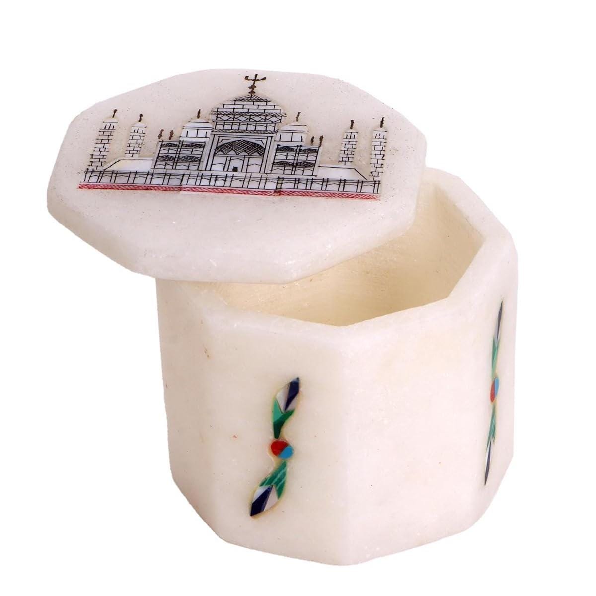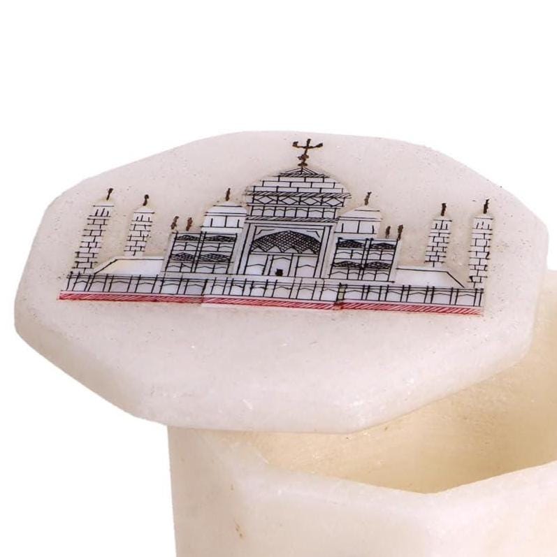 Handmade Marble Taj Mahal Decorative Box – Elegant Indian Craft for Home & Gifts
