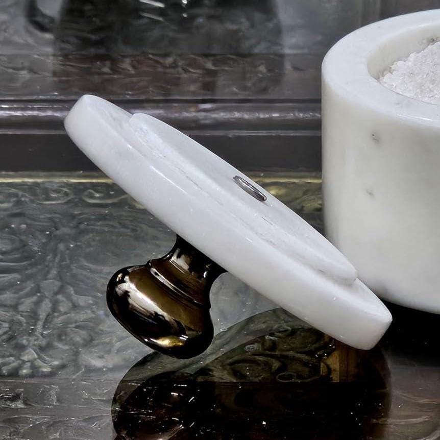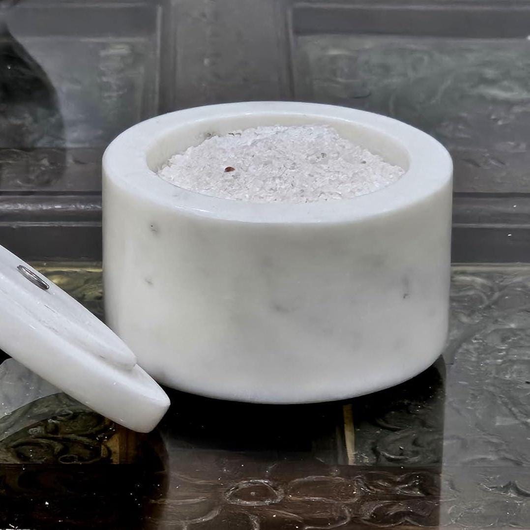 Handmade Marble Salt & Spice Holder with Lid – Elegant Small Kitchen Container