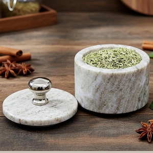 This marble storage container makes a thoughtful housewarming gift, wedding gift, festive present, or premium kitchen decor item for those who appreciate natural stone and handcrafted home accessories.