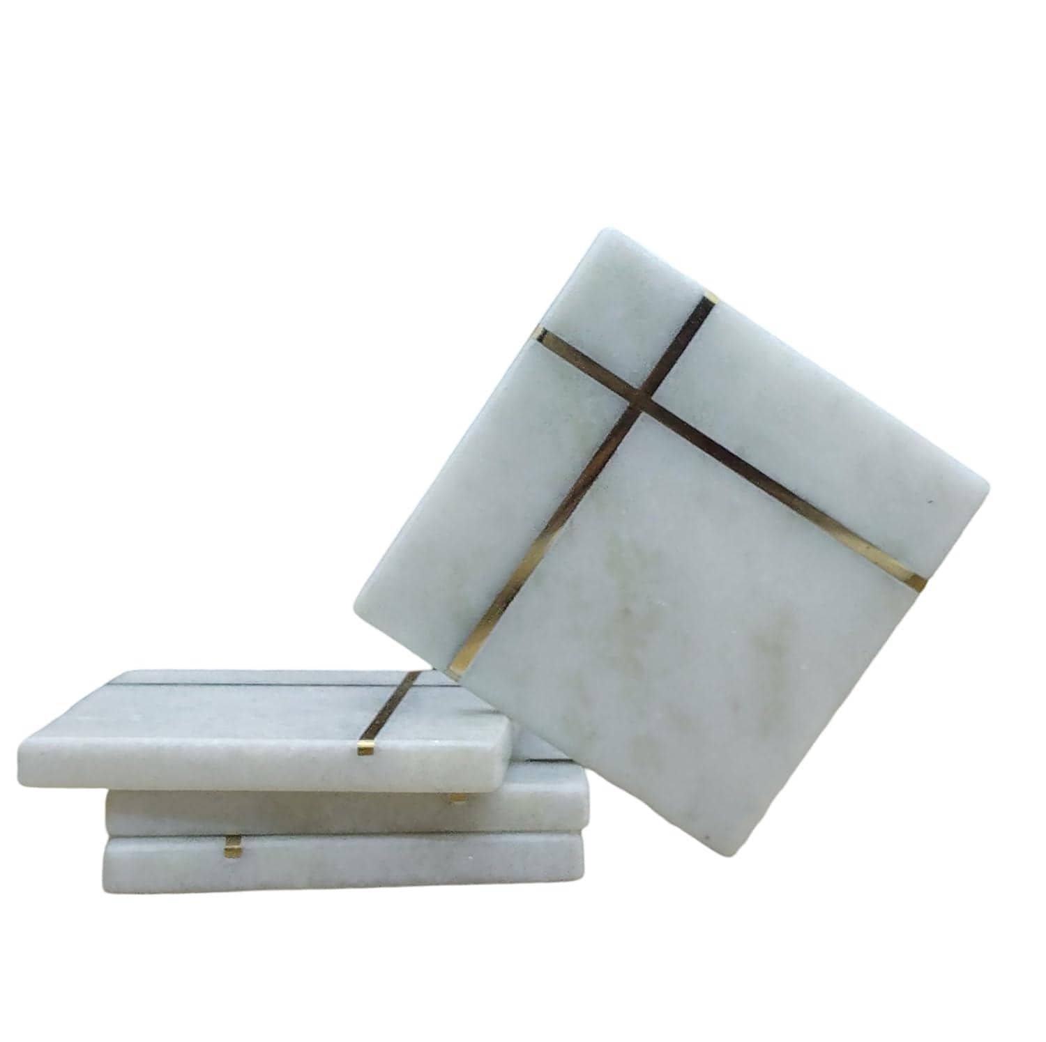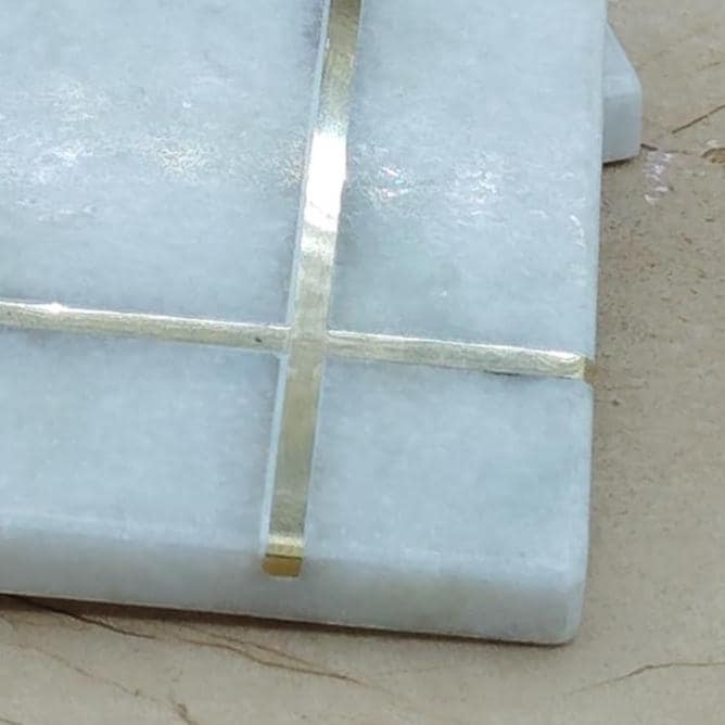 Bring artisanal beauty and practical function to your home with this Handmade Marble Square Coaster Set — meticulously crafted for elegant drinkware protection and stylish tabletop décor. Each coaster features premium natural marble and delicate brass inlay accents, giving every piece a timeless and sophisticated look.