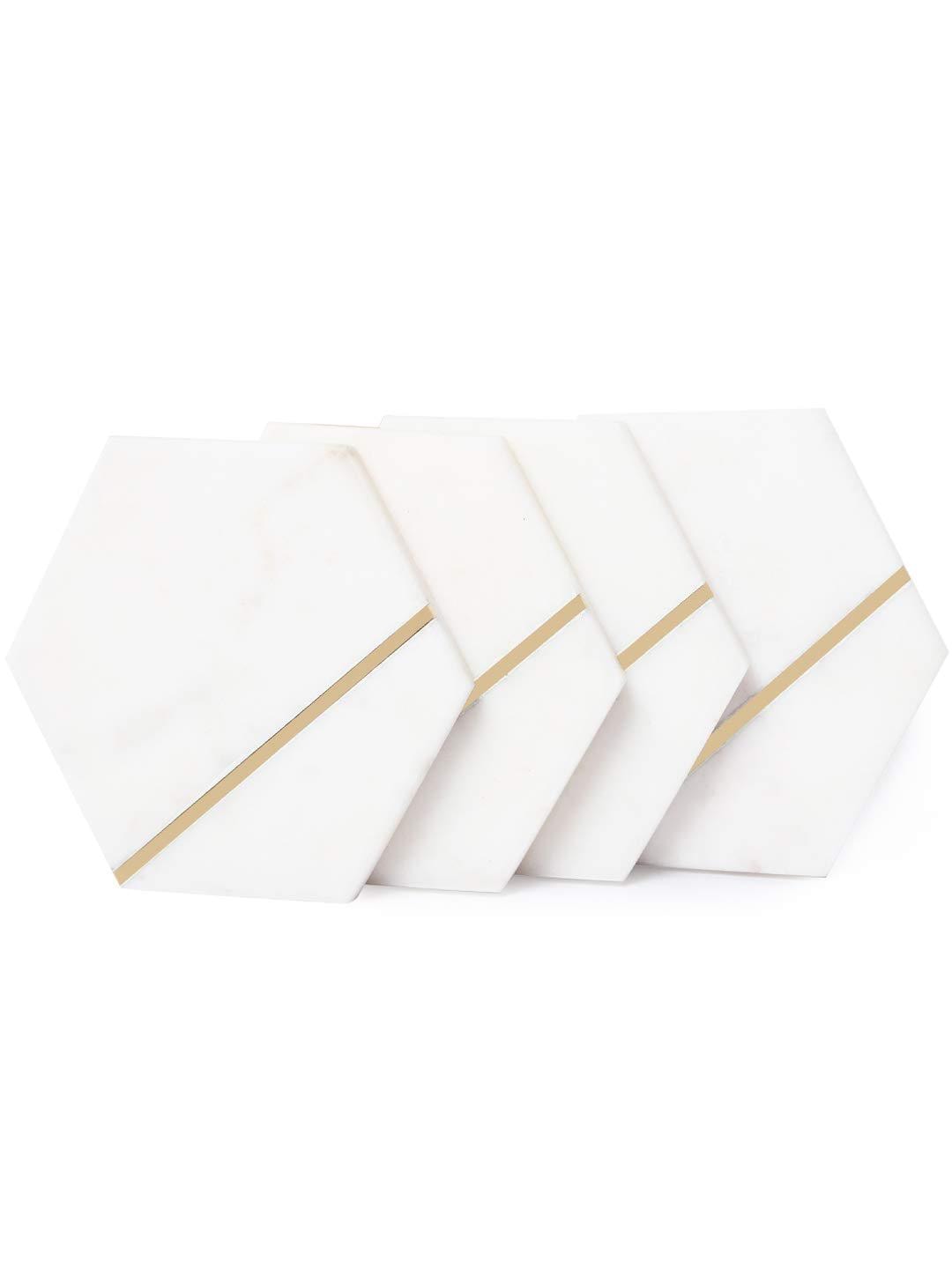 Premium Material — Crafted from durable marble stone, these coasters are sturdy, heat-resistant, and naturally beautiful. The brass accents add a luxe metallic shine that enhances coffee tables, dining sets, and work desks.