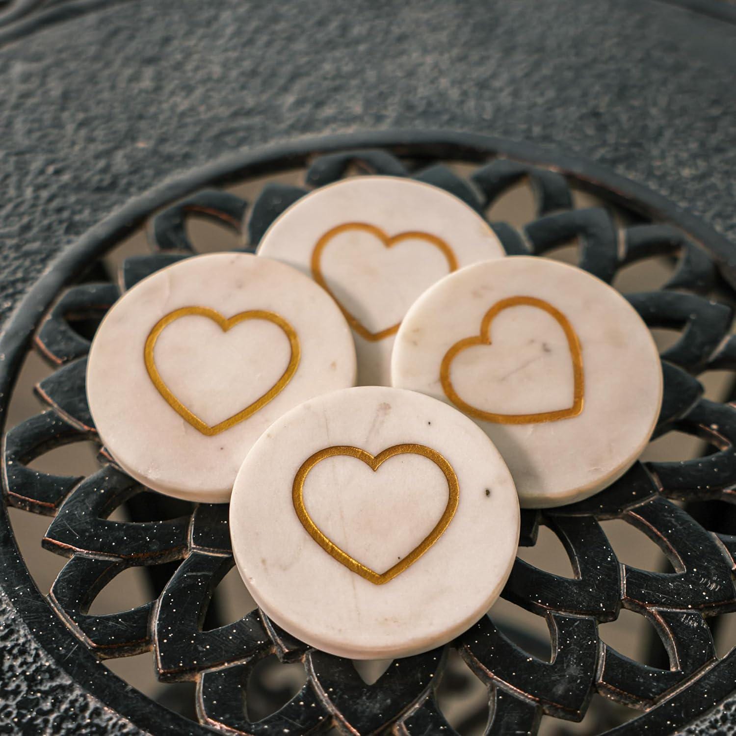 Handmade Cupid’s Touch Marble Coaster Set of 4 | Golden Inlay Stone Drink Coasters | Indian Table Decor & Protection Gift