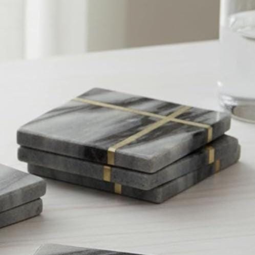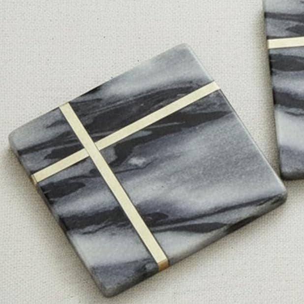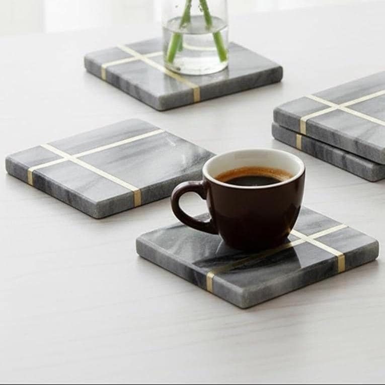 • Set of 4 square marble coasters • High-quality black natural marble • Elegant brass inlay craftsmanship • Heat-resistant and table-protective • Durable, long-lasting & easy to clean • Suitable for dining tables, coffee tables & kitchen counters