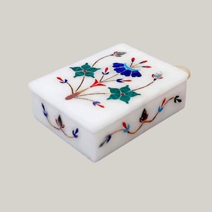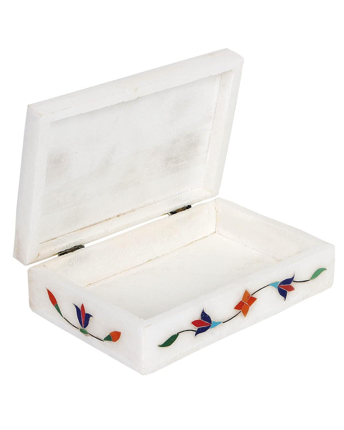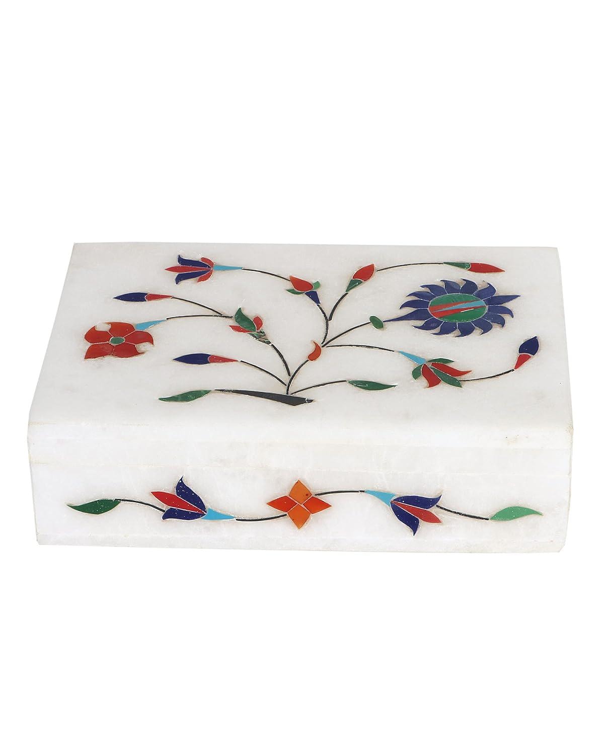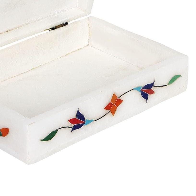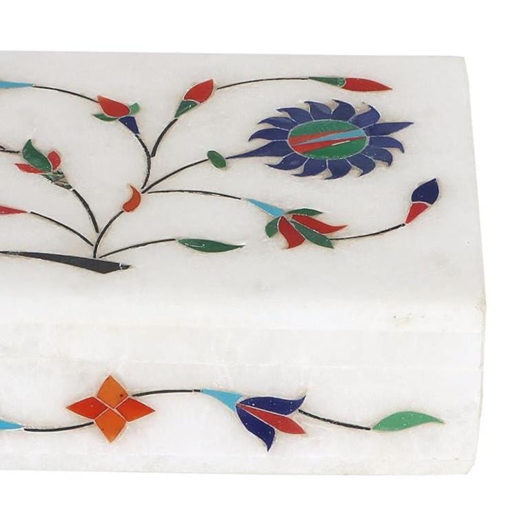 Handmade White Marble Box with Pietra Dura Inlay | Floral Stone Art Jewelry & Keepsake Storage Décor Gift